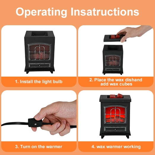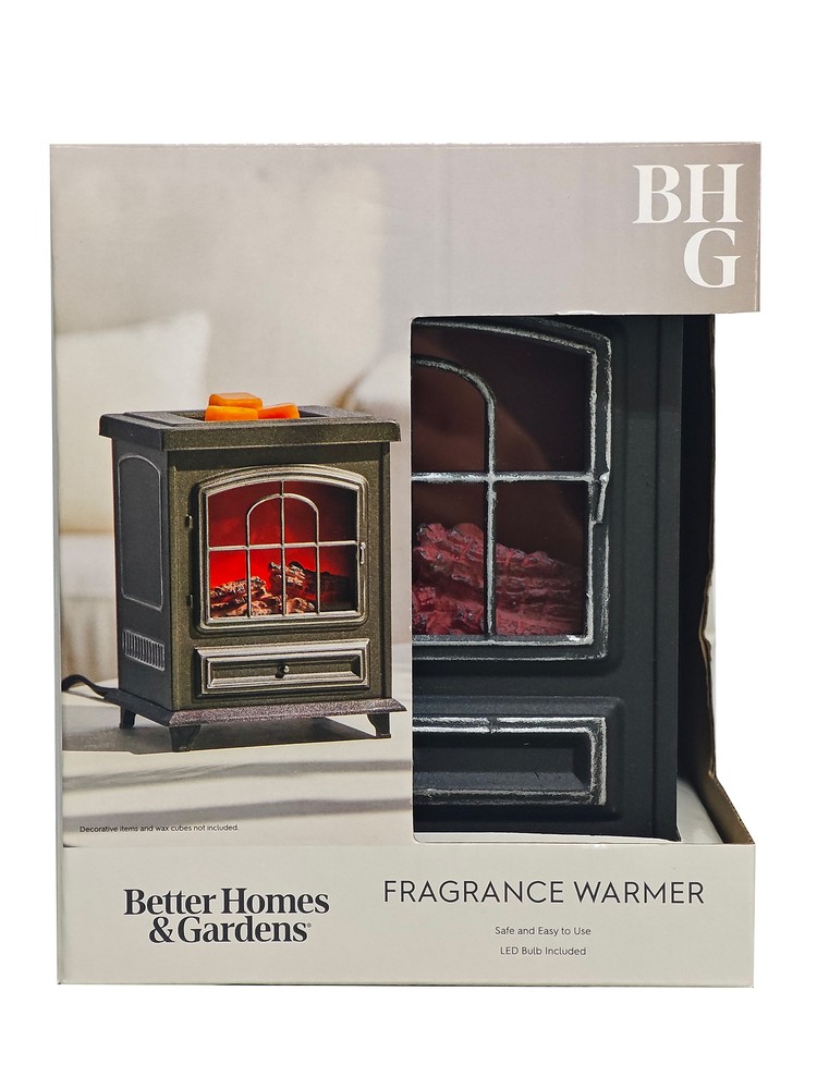 The Better Homes & Gardens Flickering Fireplace Wax Warmer is a great addition to any room. It's designed like a cast iron stove with metal finishes and realistic moving flames, giving the feeling of sitting by a wood-burning fire. It gently melts scented wax, filling the room with inviting warmth and aroma. When plugged in, it produces a soft glow without needing replaceable bulbs. This wax warmer allows you to relax while safely melting your choice of fragrance wax melts (sold separately) using electric light, avoiding soot or residue. 120V~60Hz,16W No flame or soot residue Gentle light adds a touch of ambiance Wax melts sold separately On Mar 12, 2025 at 20:52:43 PDT, seller added the following information: