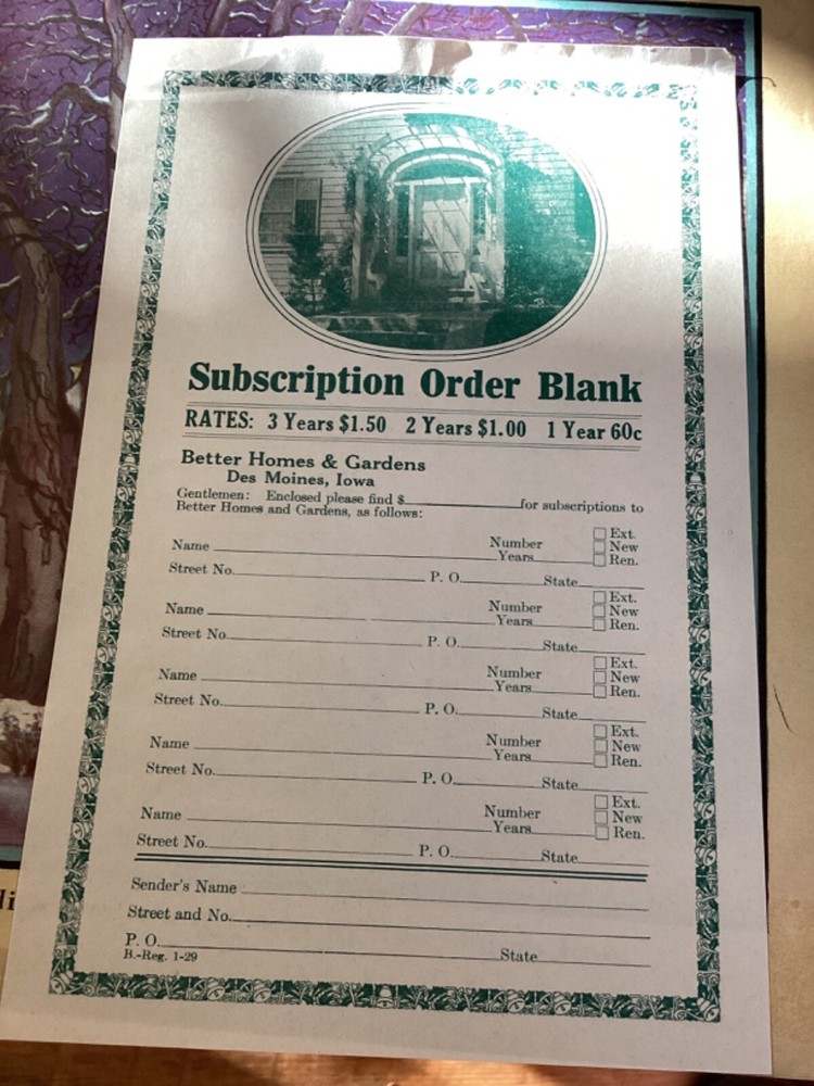 January 1929. Better Homes & Gardens. With subscription form. Very nice and interesting