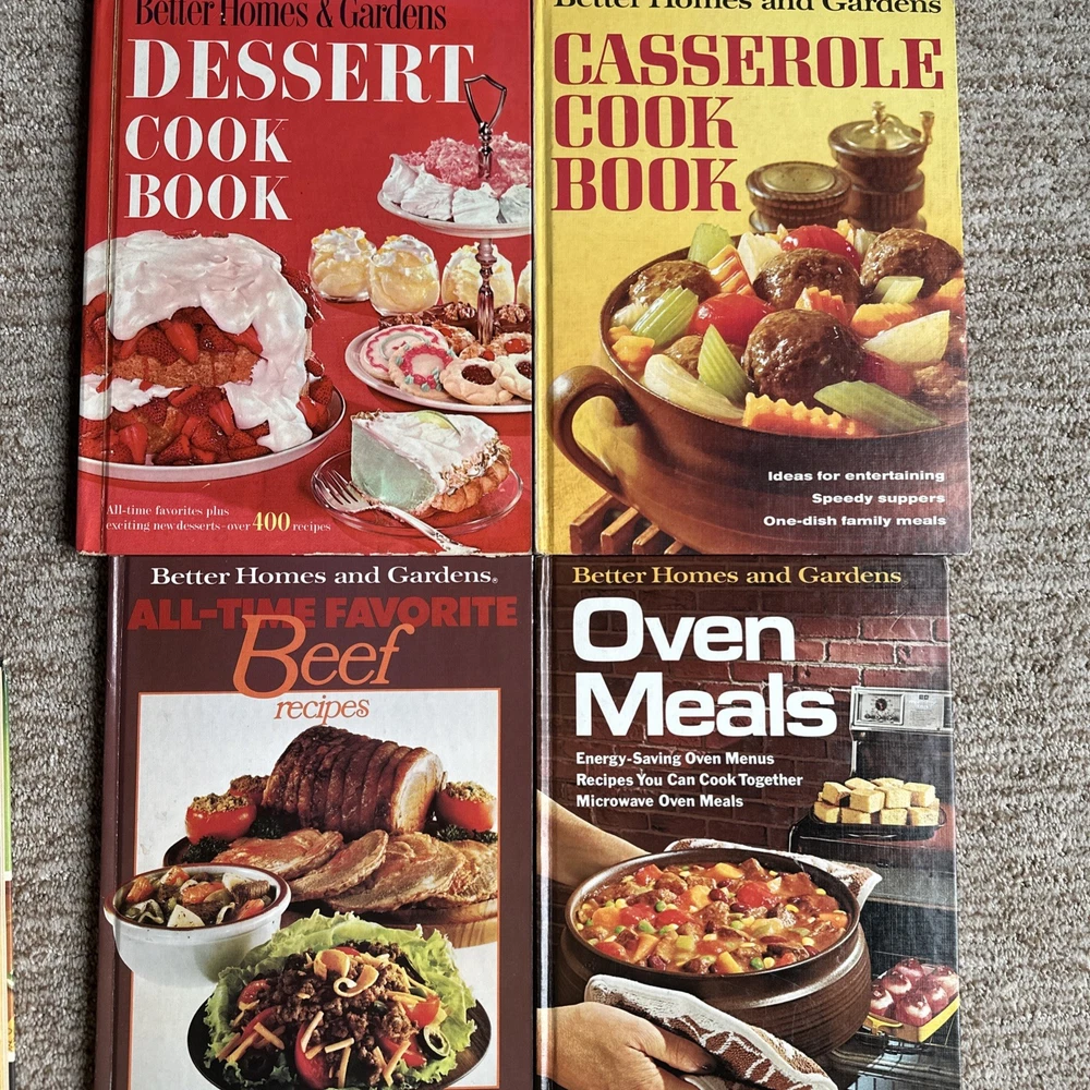 The product is a lot of 8 vintage cookbooks from Better Homes and Gardens. These hardcover books, published between the 1960 and 1977, contain a variety of recipes and cooking tips aimed at young adults and adults. Featuring illustrations and written in English, the cookbooks cover a range of topics within the genre of cookbooks, making them a valuable resource for anyone interested in cooking and home gardens. The vintage nature of these books adds a nostalgic touch to the collection, making them a unique addition to any cookbook library.