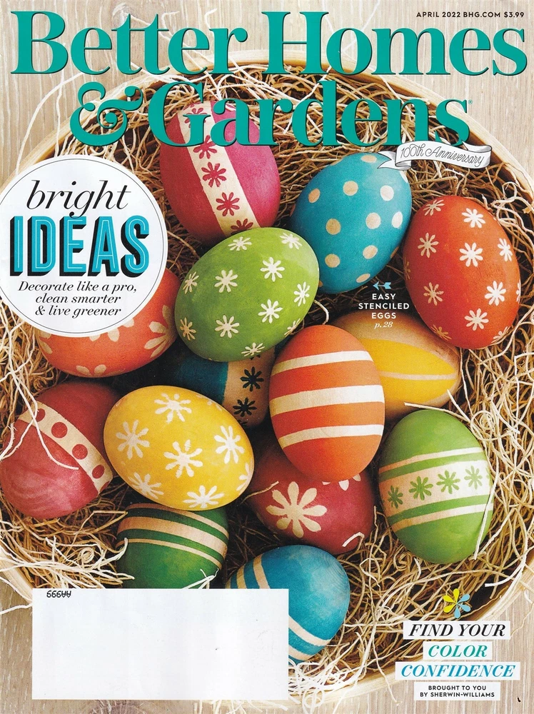 Up for auction is the Better Home And Garden Magazine back issue from April 2022. There is NO address label on the magazine. Magazine is in VERY GOOD condition. Has NO wear. Magazine comes from a non-smoking , NO pet home.Thank you for looking at my listing. Buyer pays shipping.We do combine shipping. Powered by SixBit's eCommerce Solution