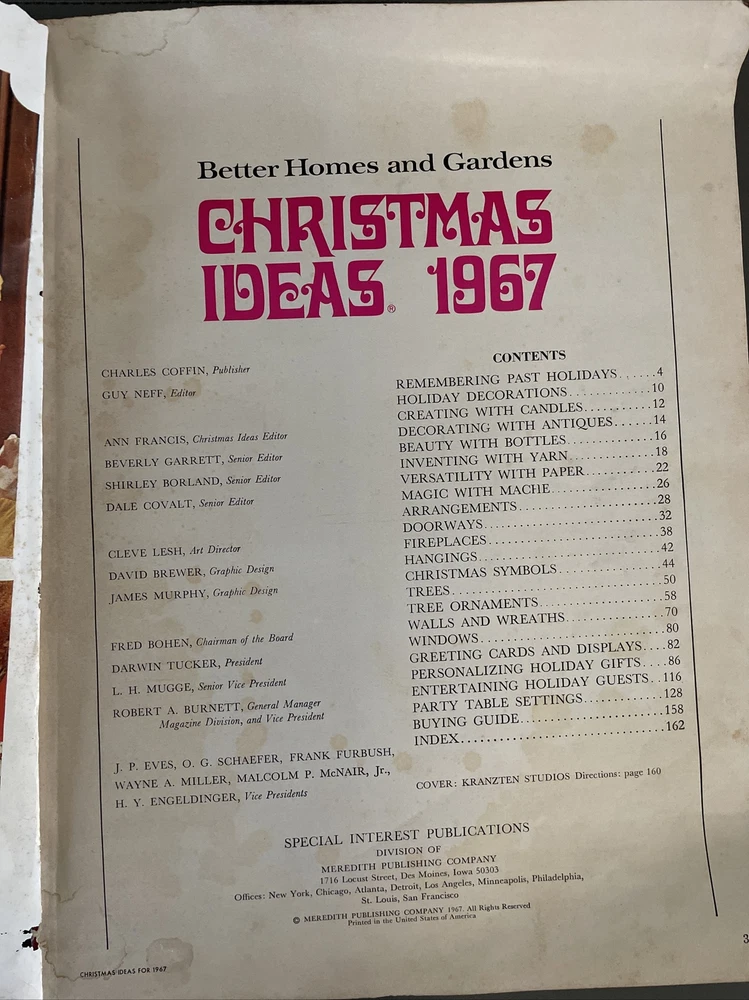 Better Homes and Gardens 1967 Christmas Ideas Decorations to Make Recipes Trees.