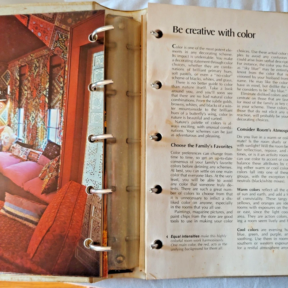 Helping my sister declutter -- She has stored some quality items for some years. Here are some bullet points: All the pages are here -- 400. Pictures of interiors in excellent condition - see pix Cover is yellowed - see pix Inside of cover has weird spotting and yellowing - see pix Cover is slightly curved with age -- see pix There are no structural imperfections - 6-ring binder works well Not crushed, ripped, bent or other similar imperfections Questions? Please ask me here on Ebay -- I want you to have all the information you want/need before you buy.