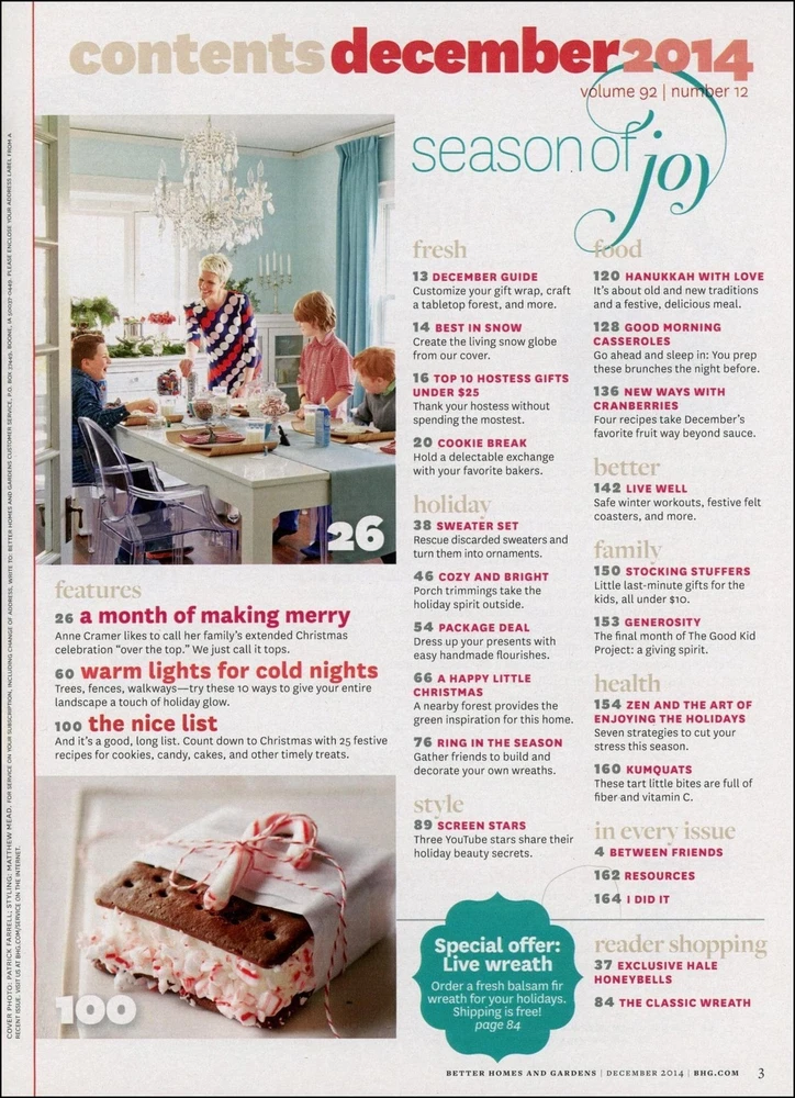 Here's a great Gift Idea! Better Homes and Gardens December, 2014 BETTER HOMES AND GARDENS magazine is one of America's oldest and most successful magazines pertaining to homemaking, cooking, and family. A typical issue is full of a variety of indoor and outdoor projects to make your home comfy and unique as well as recipes and meal planning. In addition, the magazine includes matters of family needs such as advice on finances, raising kids, and fun things to do. °°° ° °°° ° °°° ° °°° ° °°° CATEGORY: Homemaking GENRE: House, Gardening, Recipes, Parenting FEATURED ARTICLES: This issue is mostly about Christmas, especially decorations, recipes and menus. NOTABLE ADVERTISING: Pandora, La-Z-Boy, Energizer, Scentsicles, Toyota, Downy, etc. SIZE: Approx. 8" X 10.5", 164 pages. CONDITION: Used, overall good condition, good binding, no apparent missing pages. Slight cover wear. ----- + ----- + ----- + ----- + ----- + ----- + ----- + ----- + ----- This would make a great gift! Shipping: (see SHIPPING AND PAYMENTS section below) Sales shipped to an Illinois address, please add 9.00% sales tax. Multiple purchases will be combined for the lowest possible shipping costs! Please click on ADD TO CART (not BUY IT NOW) when making multiple purchases. And you're welcome to add us to your favorites list ! THANK YOU!