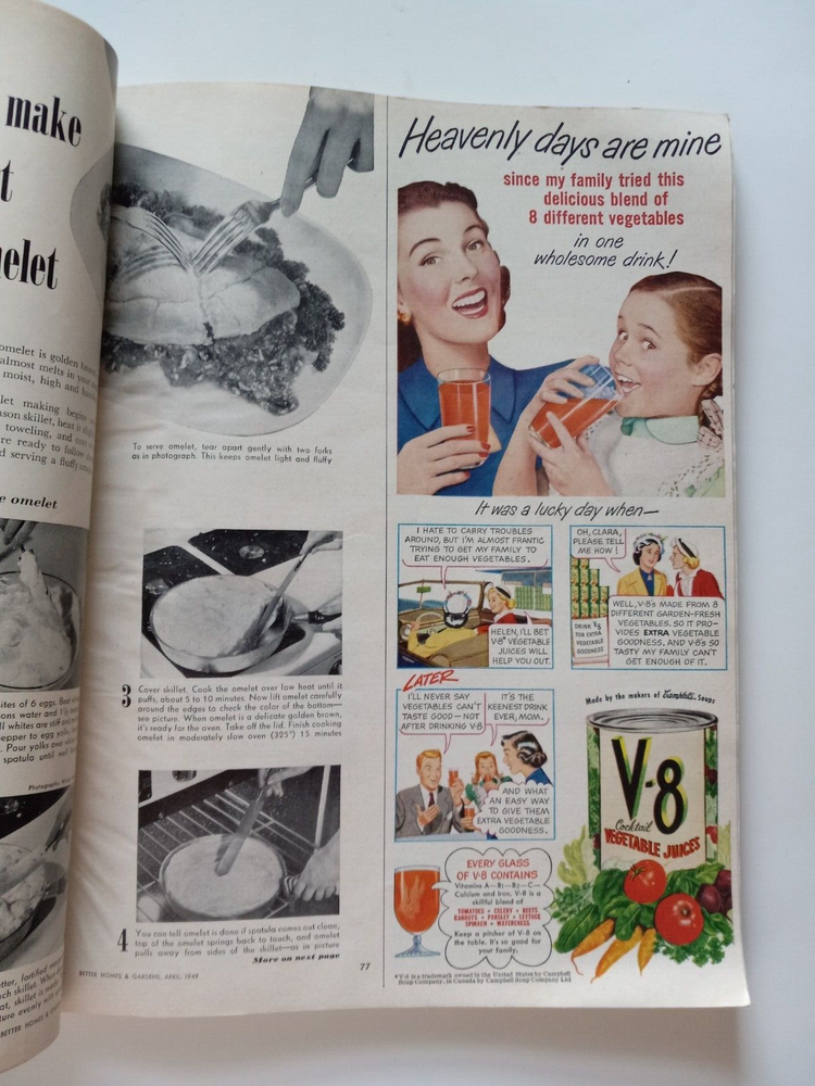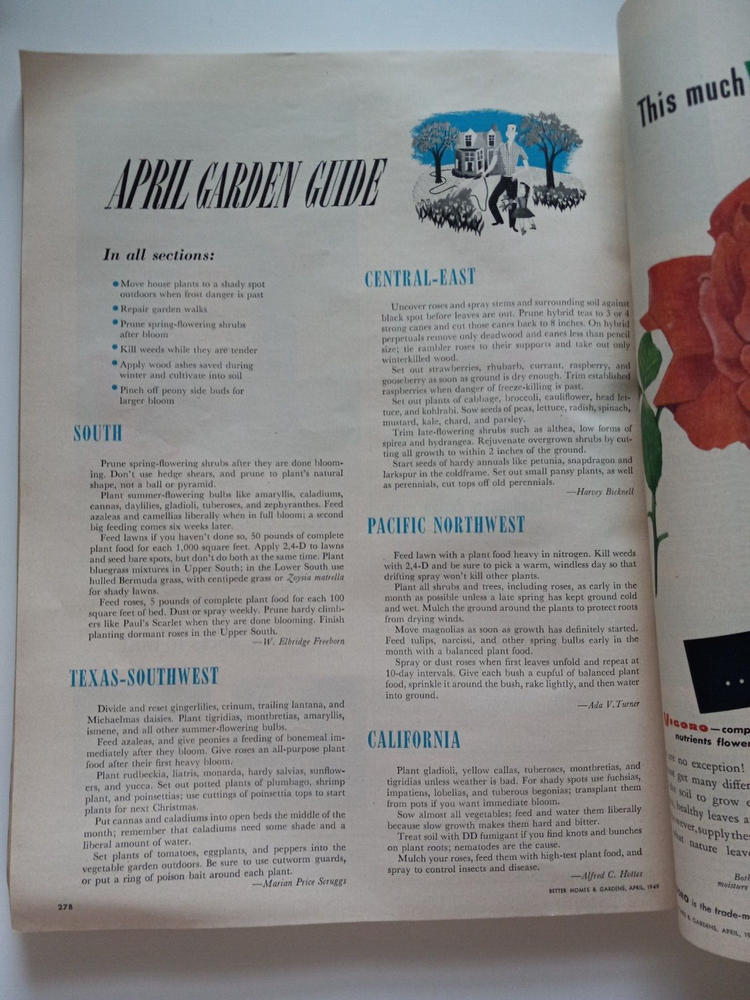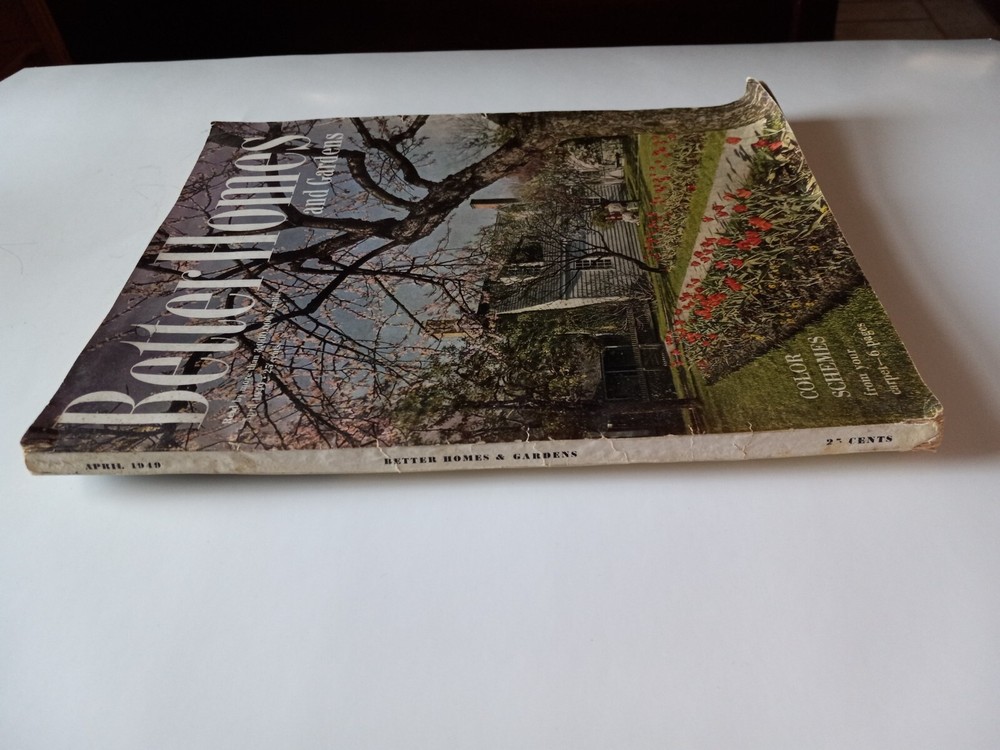 Better Homes and Gardens April 1949. Vintage Magazine. wear on the spine, creases and some bends. little ripped part on back of magazine near spine. Some small tears near edges of both sides. see pict...