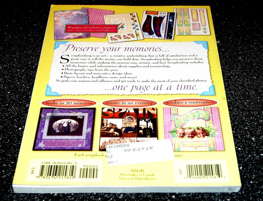 Better Homes and Gardens Book Scrapbooking Softback Everything you need to know to preserve your memories: photo restoration and preserving, framing ideas, layout ideas, etc.