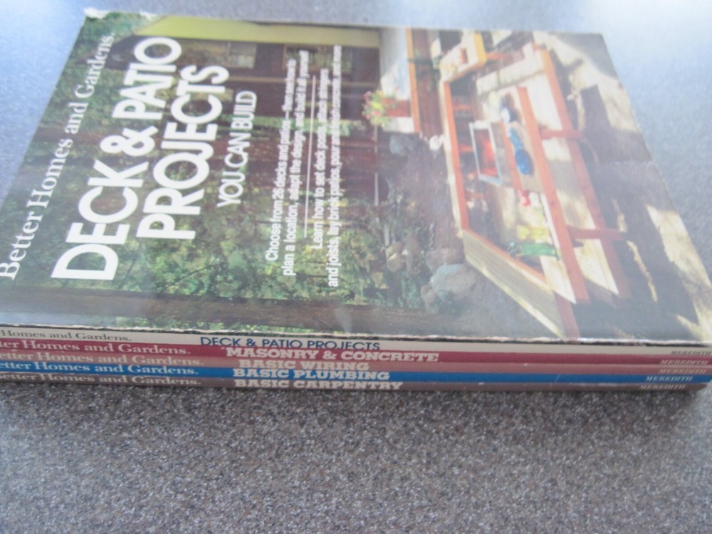 Better Homes and Gardens Books- Step by Step Books – 5 Book Set. Better Homes and Gardens Books- Step by Step Books – 5 BookSet Deck and Patio Projects Step by Step Masonry and Concrete Step by Step Basic Wiring Step By Step Basic Plumbing Step by Step Basic Carpentry Barely used set of 5 books - May show a little age from storage. SOLD AS IS