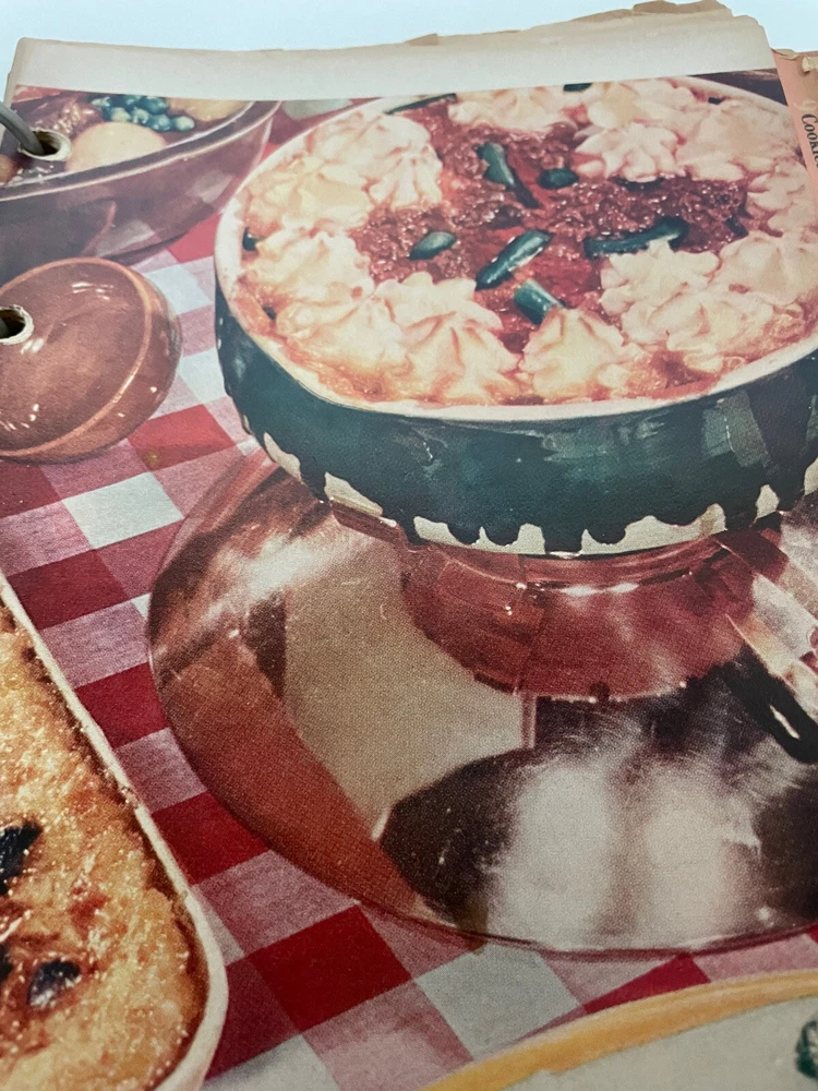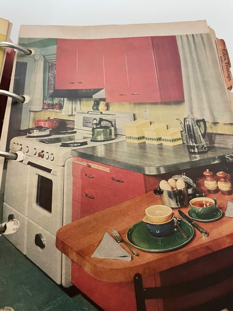 Better Homes and Gardens Books: The New Cookbook by Better Homes and Gardens Vtg. The page showing edition is missing but by looking at pictures it’s definitely 1950’s ish. I don’t see any missing pages but some are loose. Just needs new enforcement rings added. Fun to see what was popular to eat back in the day. Great photos too.