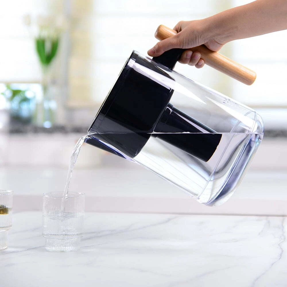 Experience the luxury of pure and tasty water with our 10-Cup Better Homes & Gardens Water Filter Pitcher. This sleek, black, BPA-free pitcher features a chic wooden handle and an LCD Timer Indicator. Our replacement filters make your water healthier and more enjoyable by reducing the taste and odour of chlorine. It's a breeze to install and lasts up to two months or 40 gallons. Interestingly, our pitcher fits BRITA filters and comes with NSF42&53 certification, reflecting our commitment to quality. Enjoy the difference with Better Homes & Gardens. On Jun 5, 2025 at 22:12:34 PDT, seller added the following information: