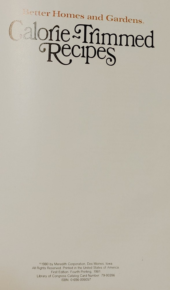 Discover a treasure trove of delicious and calorie-trimmed recipes in the cookbook "Better Homes and Gardens Calorie-Trimmed Recipes". This vintage hardcover book, published in 1980 by Meredith Books, features 96 pages of mouth-watering dishes that are perfect for young adults and adults alike. The book is a nonfiction narrative that focuses on general cooking topics and features beautiful illustrations. The recipes are designed to be both tasty and healthy, making them a great addition to any diet. Written by the Better Homes and Gardens Editors, this cookbook is a must-have for anyone who loves to cook and wants to maintain a balanced lifestyle. There is some writing in the front cover but the book is in very good shape for age.