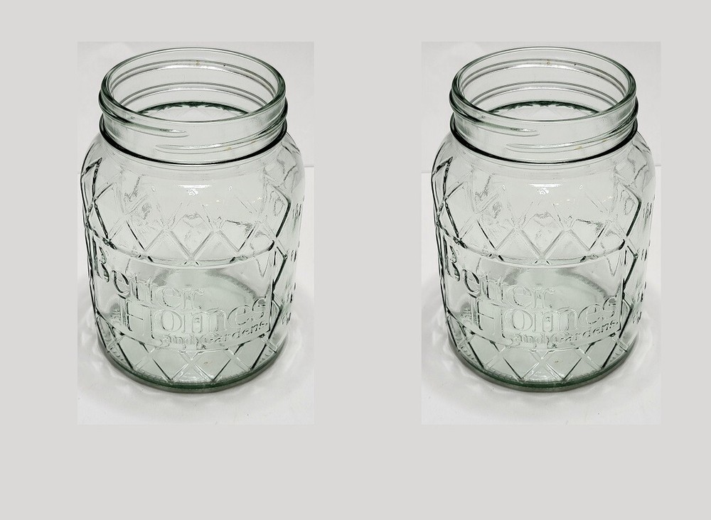 This Item is used Item(s) work, performs as it should. Does show wear from age, use etc. (please see all photos) Does Not include extra pieces, papers, accessories etc. (unless otherwise Specified, Pictured) Please allow for imperfections due to manufacture, crazing, discoloration, use, age, etc All measurements are Approximate The Color may vary some from photos. Please see all the photos as they are part of the description. --------> This Item has been Cleaned and or Washed Per the Standard Policy -----------------------> (if Applicable) Better Homes and Gardens Clear Pint Mason Canning Jar Set of 2 No Lids