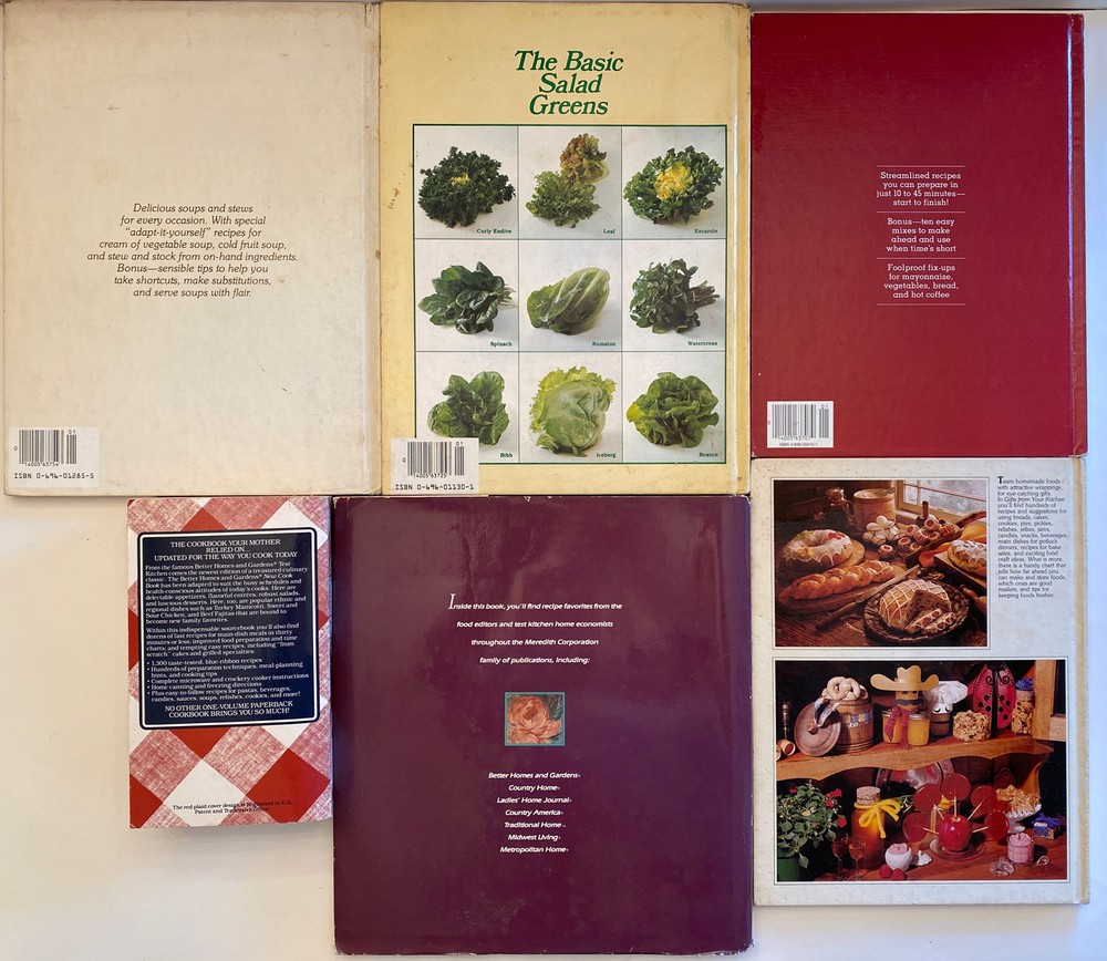 Better Homes and Gardens Cookbooks lot of 6. Better homes and Gardens new cookbook 10th Edition, fix it fast Cookbook, soups and stews, all-time favorite salad recipes, gifts from your kitchen, & food editors treasured recipes. B3