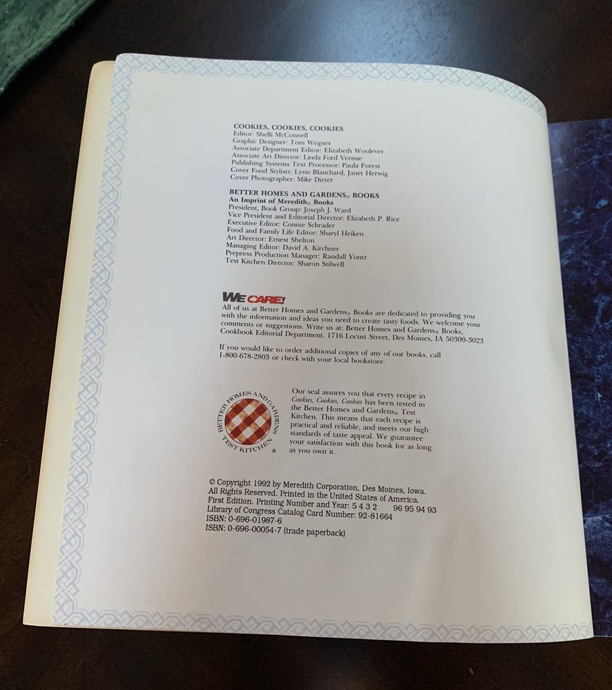 This is a hardcover book titled "Cookies, Cookies, Cookies" published in 1992 by Better Homes and Gardens Editors. It is part of the Better Homes and Gardens Ser. series and focuses on cooking, specifically courses & dishes related to cookies. The book includes illustrations, weighs 23.2 ounces, has 144 pages, and is written in English. Barely used. Like new.