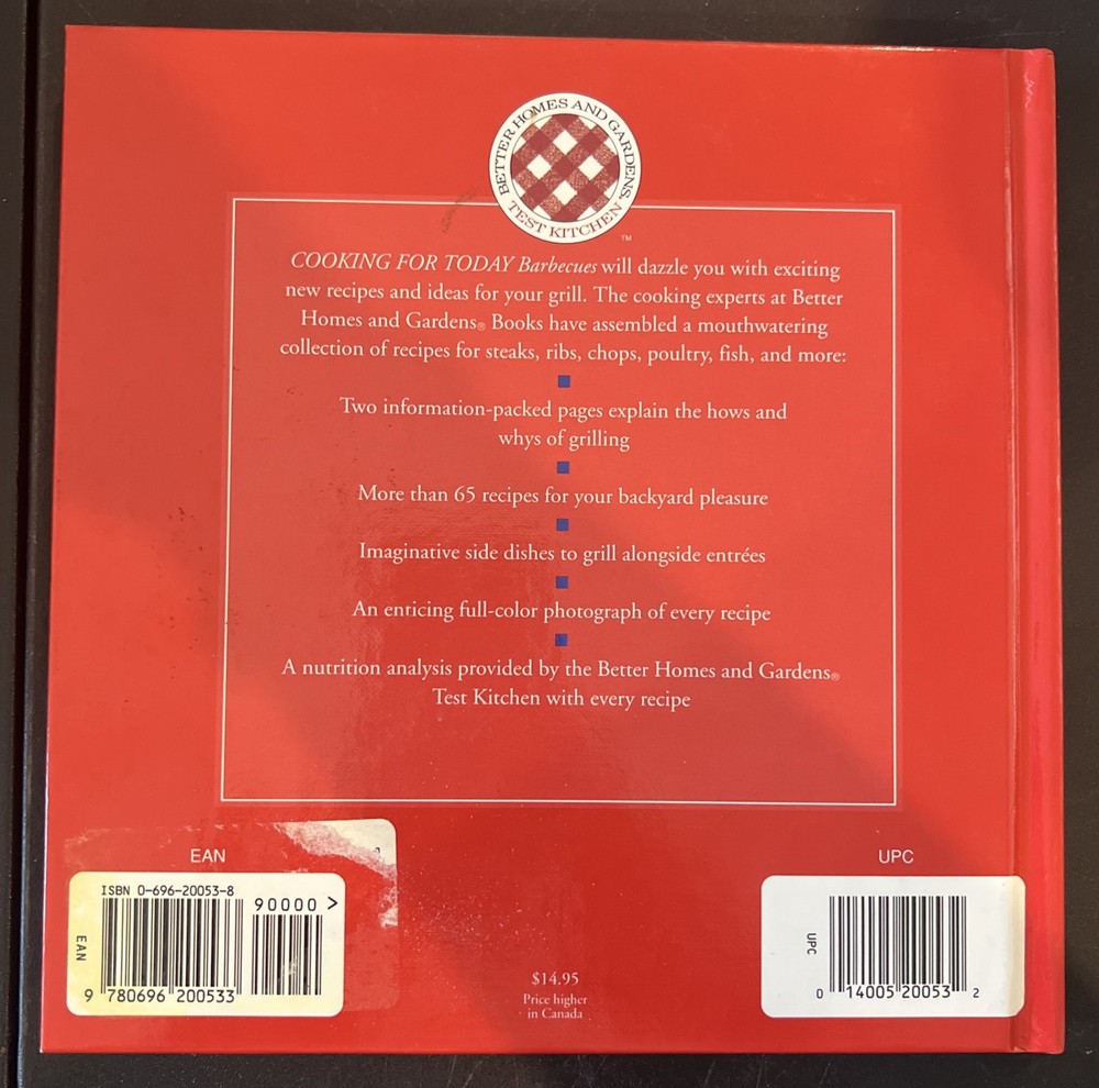 | Book Title | Better Homes and Gardens Cooking for Today : Barbecues |