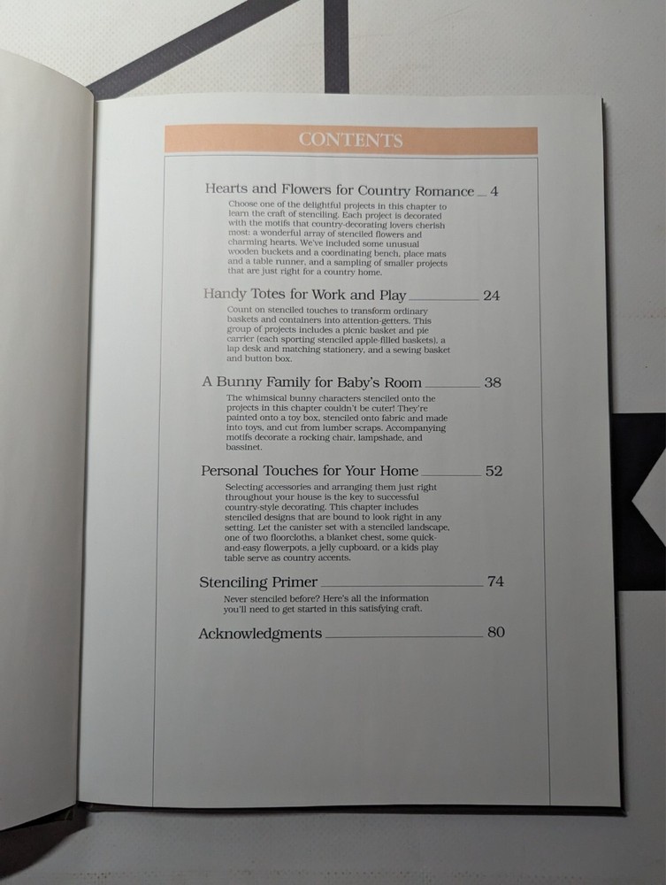 Better Homes and Gardens Country Stenciling by BHaG 1988 Hardcover Vintage! Arts Book is in good condition. The covers and spine have some wear, have some (if any) creases/scratches/scuffs/marks/dirty, and some of the corners/edges are peeling up. There is a sticker on the back cover. The inside looks good. I'll be happy to combine shipping on items as long as they are in the same order. Please let me know if you have any questions, and have a CRAZY day!