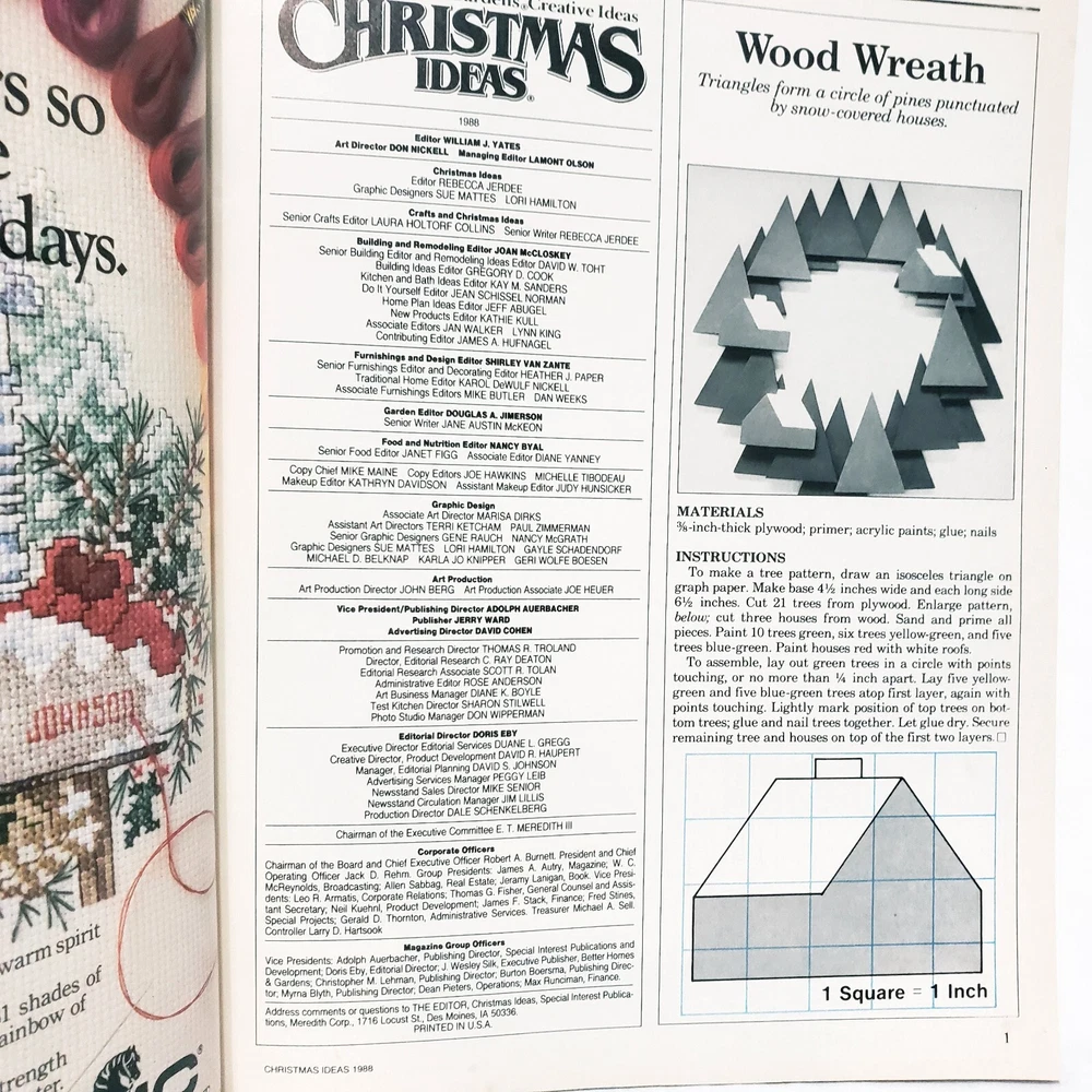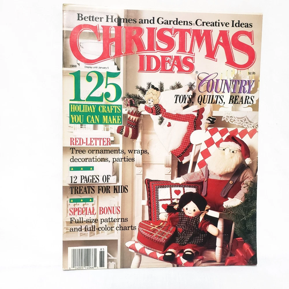 Christmas Ideas Holiday crafts you can make Tree ornaments, wraps, decoration, parties 12 pages of treats for kids Full size patterns and full color charts and more Brand: Better Homes and Gardens Item: Magazine Year: December 1988 Condition: Wear to both covers, edges and spine. Discoloration on some pages. International Shipping - Buyer pays full shipping charges, tariffs, duties, fees, etc...