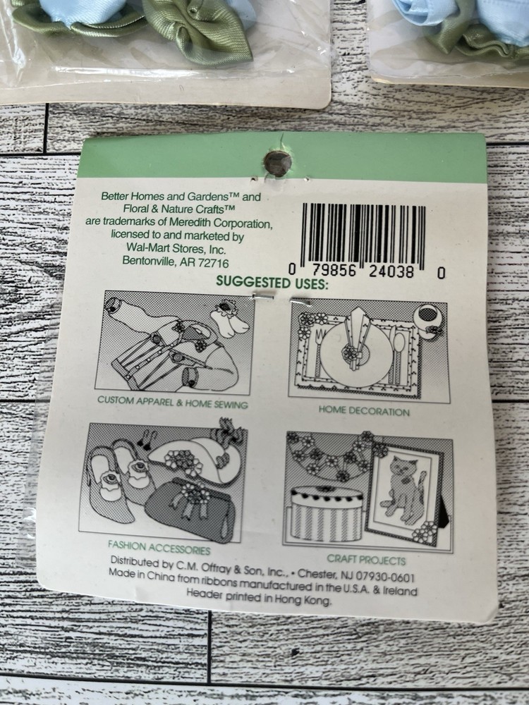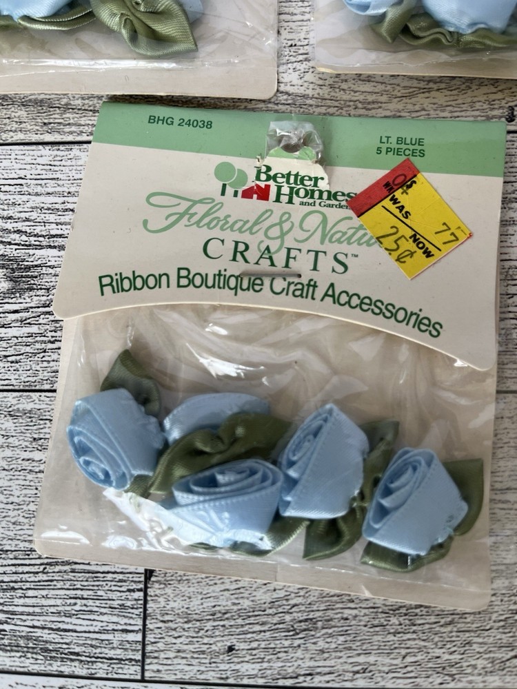 Up for sale are these Better Homes and Gardens Floral & Nature Ribbon Boutique Flowers Lt Blue 5 Packs/ 5 pieces in each. New in package. Please let me know if you have any questions. Thanks for looki...