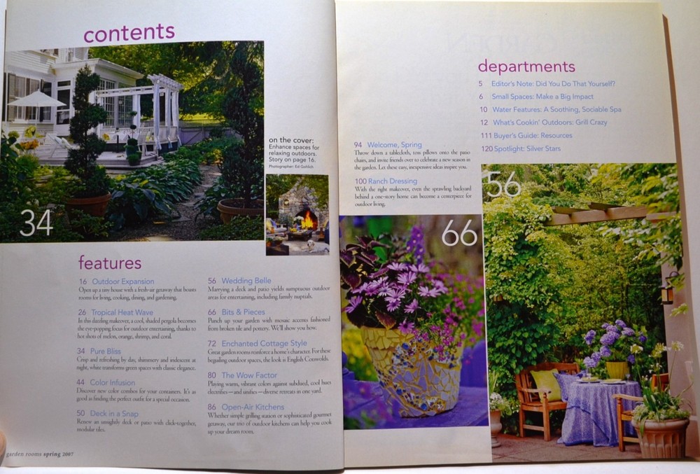 Preowned in good condition. Better Homes and Gardens Special Interest Magazine GARDEN ROOMS Spring 2007 120 pages I will combine shipping to help save you on cost. If you have several items that you are purchasing, just request a revised invoice and I will provide you one with combined shipping costs.