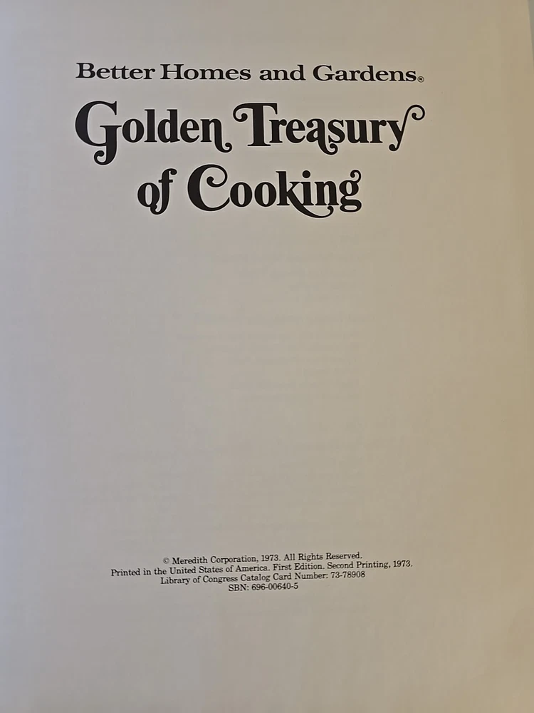 Better Homes and Gardens Golden Treasury of Cooking Cookbook 1973 Hardback VTG. Pre-owned and in very good condition. See picture for further details. * Please note I do not offer returns. * Terms of service: * By purchasing you agree to the item description as indicated in the photos and details outlined. * If there is an issue with shipping i.e. you have not received, or damaged, notify me promptly to address it with shipping service. * All return requests forced through eBay are subject to buyer's expense. I will not pay for return shipping on items purchased under any circumstance. * Please review the listed item condition, description and photo thoroughly. * Make note that some items listed are subject to age and use conditional alterations to include color variations, hardware change, wear and tear or the like before being listed. Make sure as the buyer you view photos thoroughly or contact sellers with questions. * Be aware that many of the items listed are pre-owned, vintage or antique and they should NOT be held to the same conditional standards or ideology as a new item, or items already in your possession or an item you intend to pair with a similar item. It just may not match due to age, wear, and storage. * Please note I am not an authenticator, nor do I have a certificate to validate items listed. I do my best to describe listing accuracy through description and photos. I compare items to other items I see listed. On some occasions I send item pictures and descriptions to an outside source for authenticity, in that case I will mention the outcome and source. It is the buyer's responsibility to determine value for them upon bidding and ultimately purchasing an item I have listed. *Only bid on items if you understand policy and desire to add to your collection. If you feel you have made a mistake, retract the bid immediately. I will not. Go to the eBay Help section for instructions. * Although some items have tags, appear to be new, they may be out of date or have been stored for a significant amount of time. * Combined shipping available on items that are applied at checkout. *Seller is open to realistic offers, message with request. Policy is subject to change at the will of the seller. * Message me if you have questions. I am happy to offer further assistance. * If I have earned your business with a positive outcome, please let me know with a review I will reciprocate.