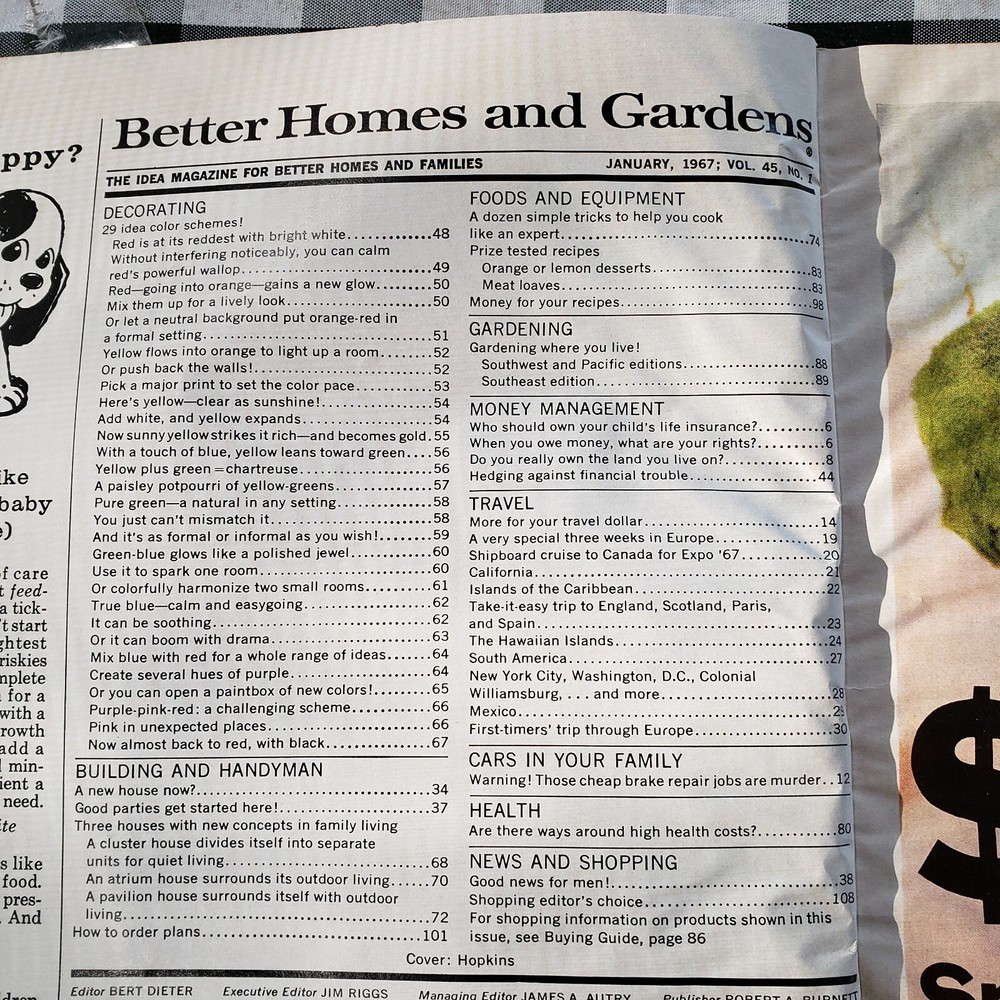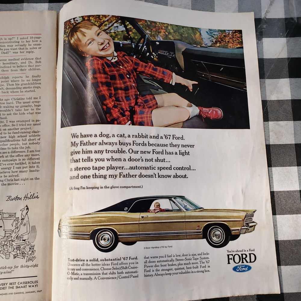This vintage issue of Better Homes and Gardens magazine from January 1967 features interesting articles on cooking, news, and general interest topics. It also includes Ford advertising and floorplans for 1960s decor. The publication is in English and is not a signed copy or subscription. Special attributes include MereMart.com quality.