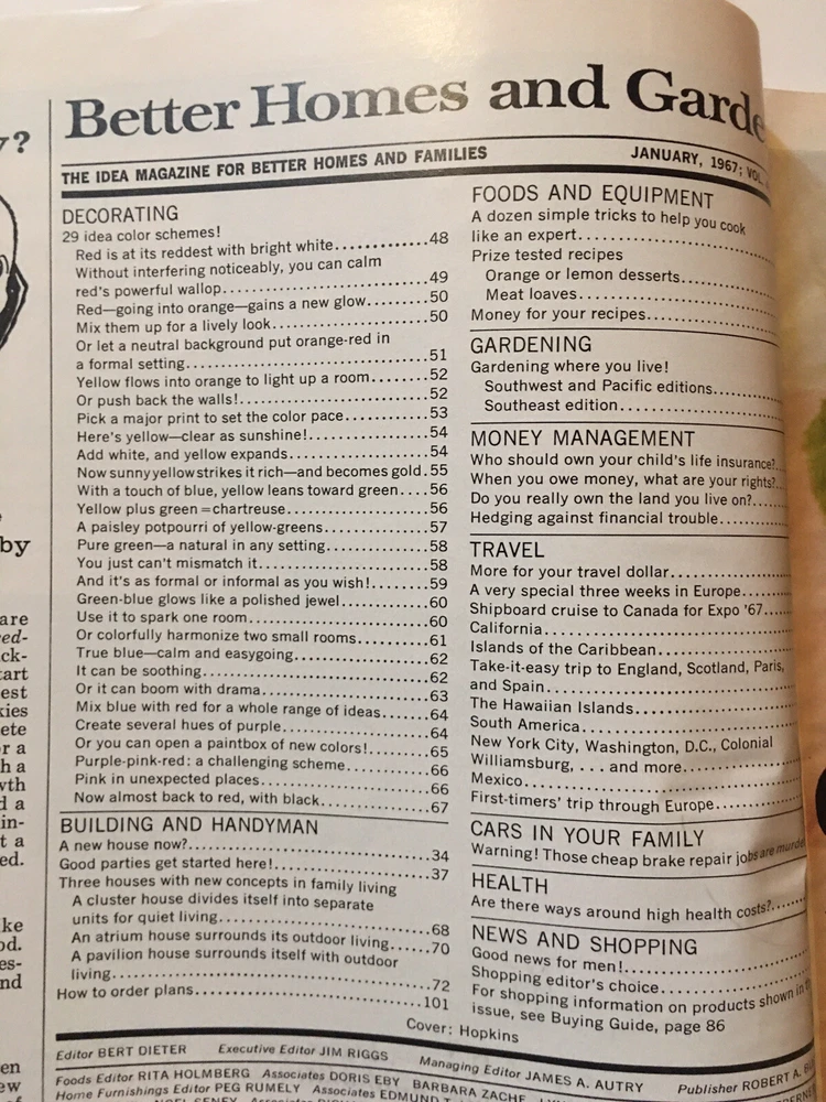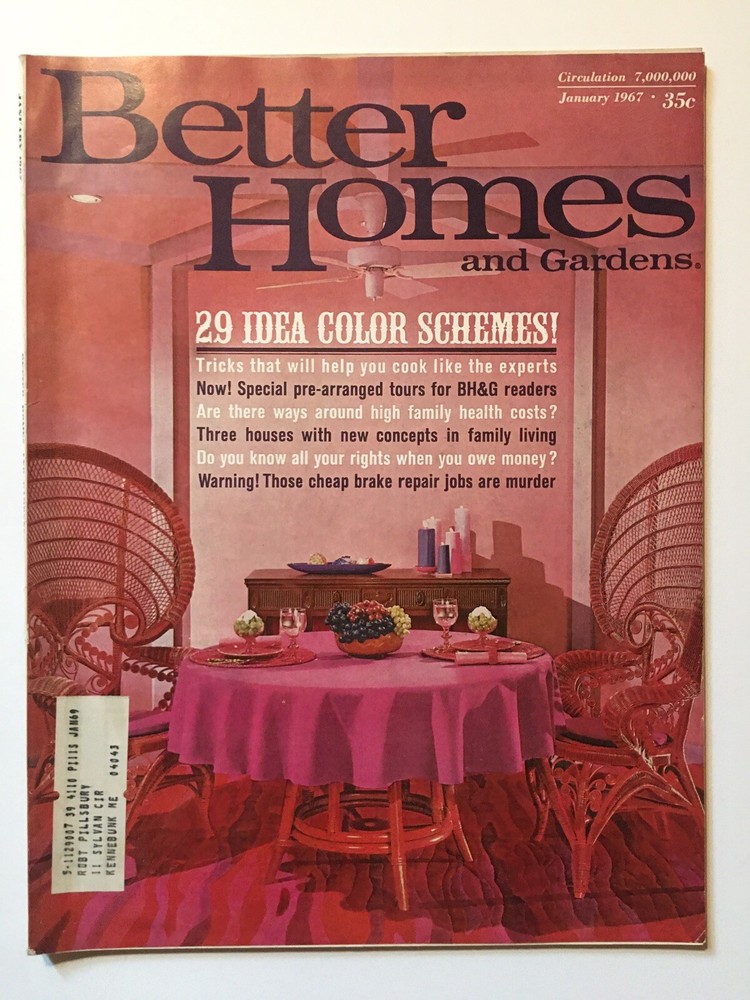 Better Homes and Gardens January 1967 color & family in room decor Cooking tips good condition 60's ads victor records Sonny and Cher 26K