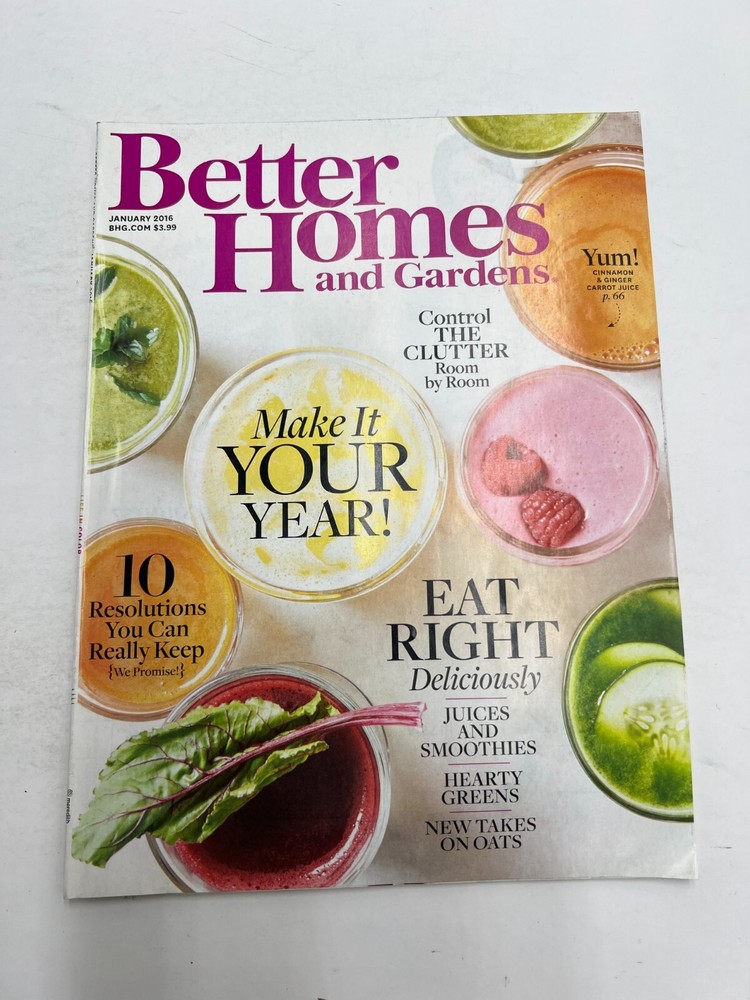 Better Homes and Gardens January 2016 - Make It Your Year! Control the Clutter For our customers who can not use USPS please let us know after your purchase so we can choose a separate shipping option. 1 00% Genuine U S A S E L L E R Check out my feedback! FAST, PROFESSIONAL SHIPPING! Shipping: · Orders placed on Monday and Tuesday before 5 AM MST Will Ship Same Day. excluding government holidays. · Orders placed Wednesday to Friday before 6 AM MST Will Ship Same Day. Tracking is provided on ALL Orders UPS Next Day Air may be available for orders over $500 at an extra cost. Please inquire for pricing prior to purchase. We always try to use the fastest standard shipping available for all of our items through UPS, FedEx and USPS. For our customers who can not use USPS please let us know after your purchase so we can choose a separate shipping option. Returns : ALL returns are accepted if returned within 30 days. Money Back or exchange guaranteed. NO Restocking Fees.