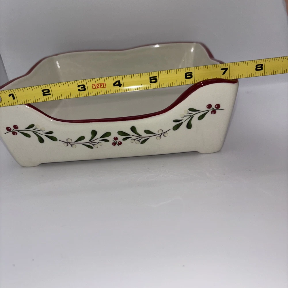 This napkin holder is a gorgeous addition to my holiday table! The mistletoe design adds festive charm, and the sturdy build keeps napkins neatly in place. The quality is fantastic—looks brand new and elevates my decor. Highly recommend for anyone wanting a touch of classic Christmas style!