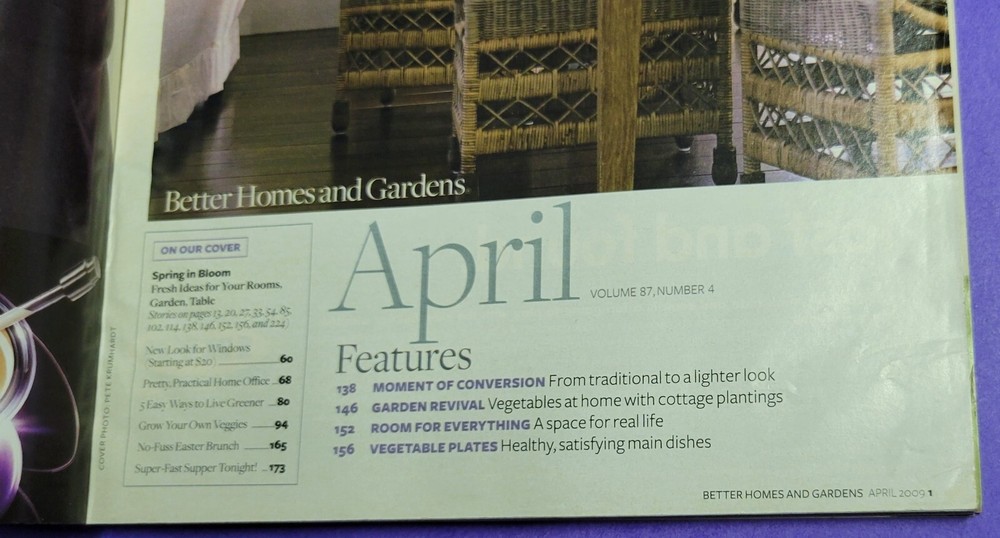 Better Homes and Gardens Magazine April 2009 Volume 87 Issue #4 Magazine is in overall good, read condition.