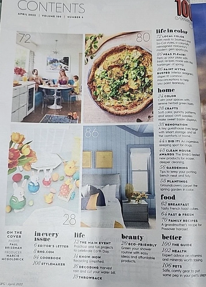 Better Homes and Gardens Magazine April 2022 Bright Ideas Magazine is in very good condition with minimal wear. No watermarks. Please see photo of contents in this issue. Comes from a smoke free home. Fast shipping after purchase. Thank you for looking at this item. I combine shipping for multiple purchases. Reasonable offers are always considered. Feel free to send me a message at any time.