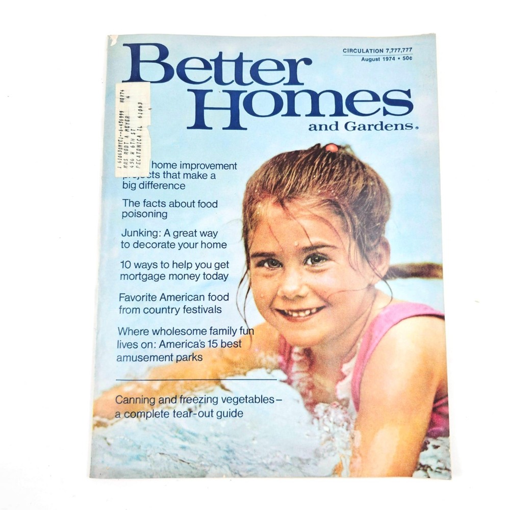 Better Homes and Gardens Magazine August 1974 Canning and Freezing Vegetables Better Homes and Gardens Magazine August 1974 Canning and Freezing Vegetables This listing is for the following item: Better Homes & Gardens Magazine. Good condition, please see pictures below for details. About Us Payment Shipping Returns All items are stored in a Smoke Free/Pet Free environment. We strive to provide the best, gently used clothing, household and other items. We take multiple pictures per item, and try to show any flaw that happens to be in that item. Please enlarge our pictures and look them over before purchasing. If you have any problems with your purchase please CONTACT US via eBay's messaging system before CONTACTING EBAY, or leaving negative feedback! We will always handle ANY problem that comes along, contacting us first speeds up the process, and you can always contact eBay if you are not happy with how we handle the problem. Paypal payments are accepted. Please contact us with any questions before purchasing. Free Shipping in the US is done via USPS First Class Shipping. We Ship all orders within 1 business day of your payment clearing. This does not include weekends and holidays. We will accept your return within 30 days of purchase. Please note that the item must be returned in the EXACT same condition that it was shipped. Listing and template services provided by inkFrog