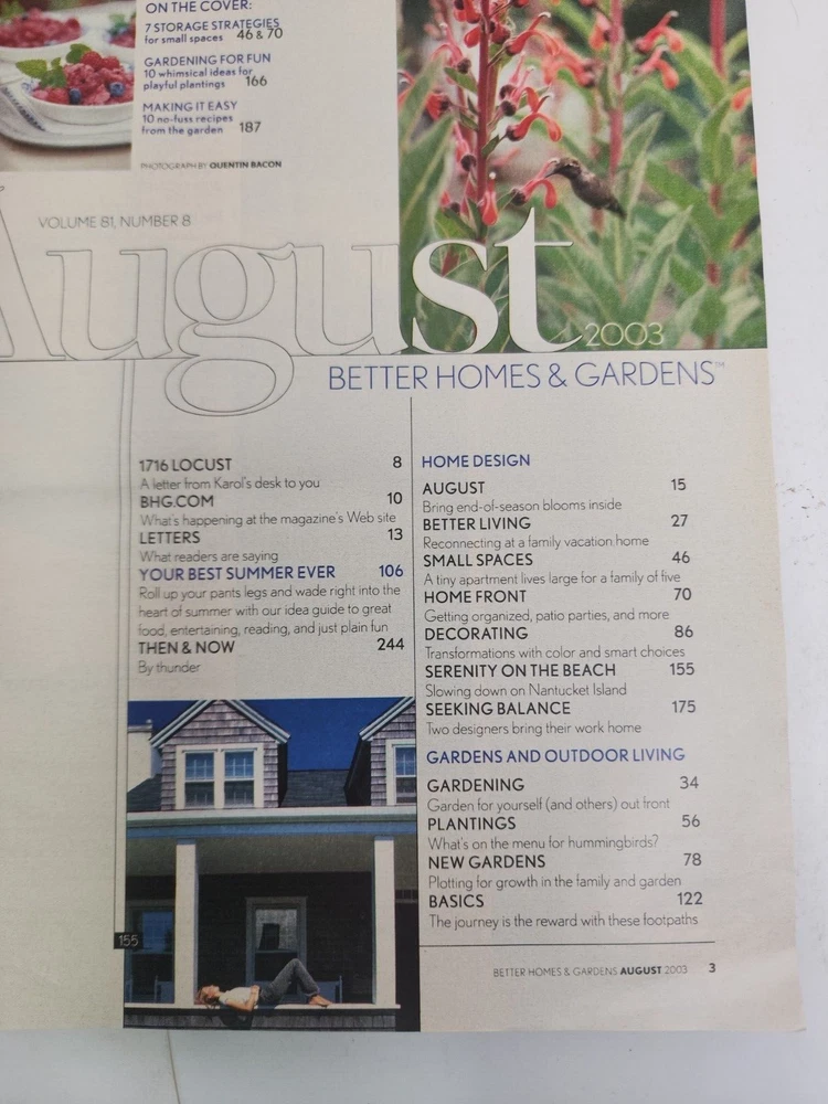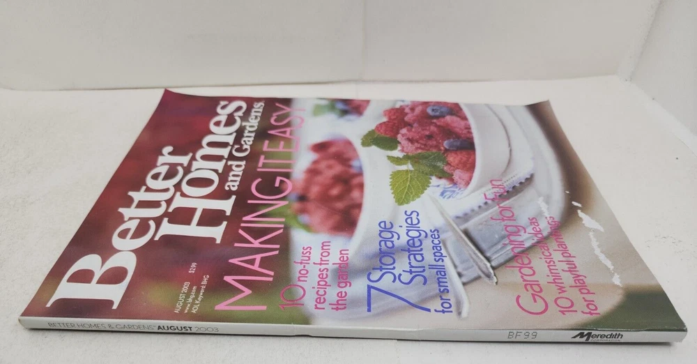 Better Homes and Gardens Magazine August 2003 Making It Easy Magazine is clean with minimal wear. No tears, no water damage, and no musty or smoky odors. Please see photo of contents in this issue. Comes from a smoke free home. Fast shipping after purchase. Thank you for looking at this item. I combine shipping for multiple purchases. Reasonable offers are always considered. Feel free to send me a message at any time.