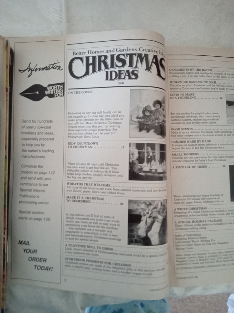 Better Homes and Gardens Magazine Christmas Ideas December 1984 Vintage very good to nice vintage condition...clean and intact...smoke free and pet free... from our family collection... 100 holiday crafts... baby's first Christmas..crochet..smock or embroider.. for kids..bears..blocks..puppets and angels... full size patterns for 30 projects... raggedy doll family... thanks for supporting small business... cg-u