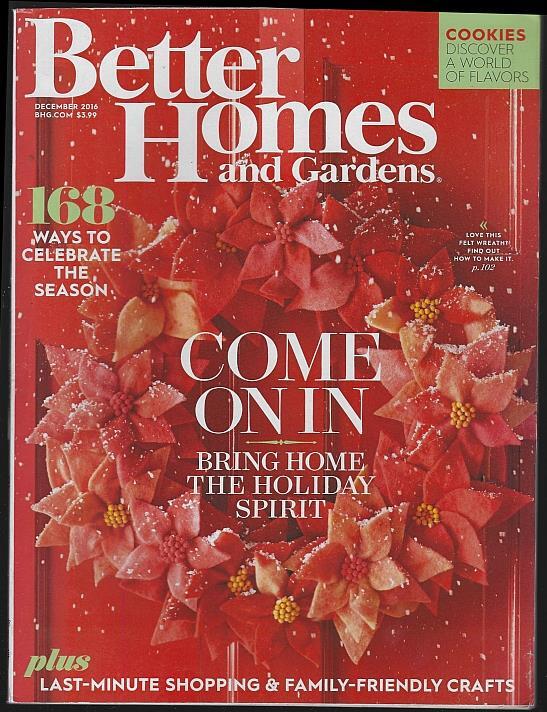 Better Homes and Gardens Magazine December 2016 Holiday Spirit Poinsettias Better Homes and Gardens Magazine December 2016 Holiday Spirit Poinsettias Click image to enlarge Description Better Homes and Gardens Magazine December 2016. Come on In. Bring Home the Holiday Spirit on the Cover. Holiday Articles inside include Camp Christmas, Poinsettias, European Christmas, Cookies, Holiday Decorating, Holiday Recipes, and more. Filled with great Holiday illustrations and period advertising. Magazine is in good condition, wear at edges Payment We accept Visa, Mastercard, Discover, Amex and Paypal. Shipping We are always Happy to combine Shipping. You may also pick up your purchases at our shop in Beautiful Downtown Owens Cross Roads, Alabama. About Us We have been selling on the internet since 1993 and on ebay since 1998. We also have an open shop, West Station Antiques and Gibson's Books in Downtown Historic Owens Cross Roads, Alabama. We stock a variety of antiques, collectibles and books. Our specialties include books, ephemera, sheet music, postcards, pottery, china, and glassware. Visit our web site or open shop for a selection of over 38,000 books and ephemera. We love to answer questions, just email. Sign up for our store newsletter. Please visit our ebay store for more wonderful items. We also have two other ebay stores https://www.ebay.com/usr/gibsonsbooksocr and https://www.ebay.com/usr/samepagedifferentbook2 Featuring Lots Pictures sell! Auctiva offers Free Image Hosting and Editing. 300+ Listing Templates! Auctiva gets you noticed! Attention Sellers - Get Templates Image Hosting, Scheduling at Auctiva.com. Track Page Views With Auctiva's Counter