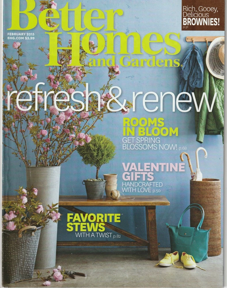 Better Homes and Gardens Magazine February 2015 Some of this issue's special features include: Refresh and Renew Valentine Gifts Handcrafted with Love Rich, Gooey, Delicious Brownies Favorite Stews Shipping and handling is $3.95 USA only. International shipping costs will be calculated by location. A shipping discount will apply on multiple purchases when combined on a single invoice. When purchasing more than one item, please request total from seller to ensure combined shipping discount. Be sure to visit Two Pink Flamingos' Store and add us to your F avorites List ! Questions? Feel free to email twopinkflamingos by sending message through eBay.