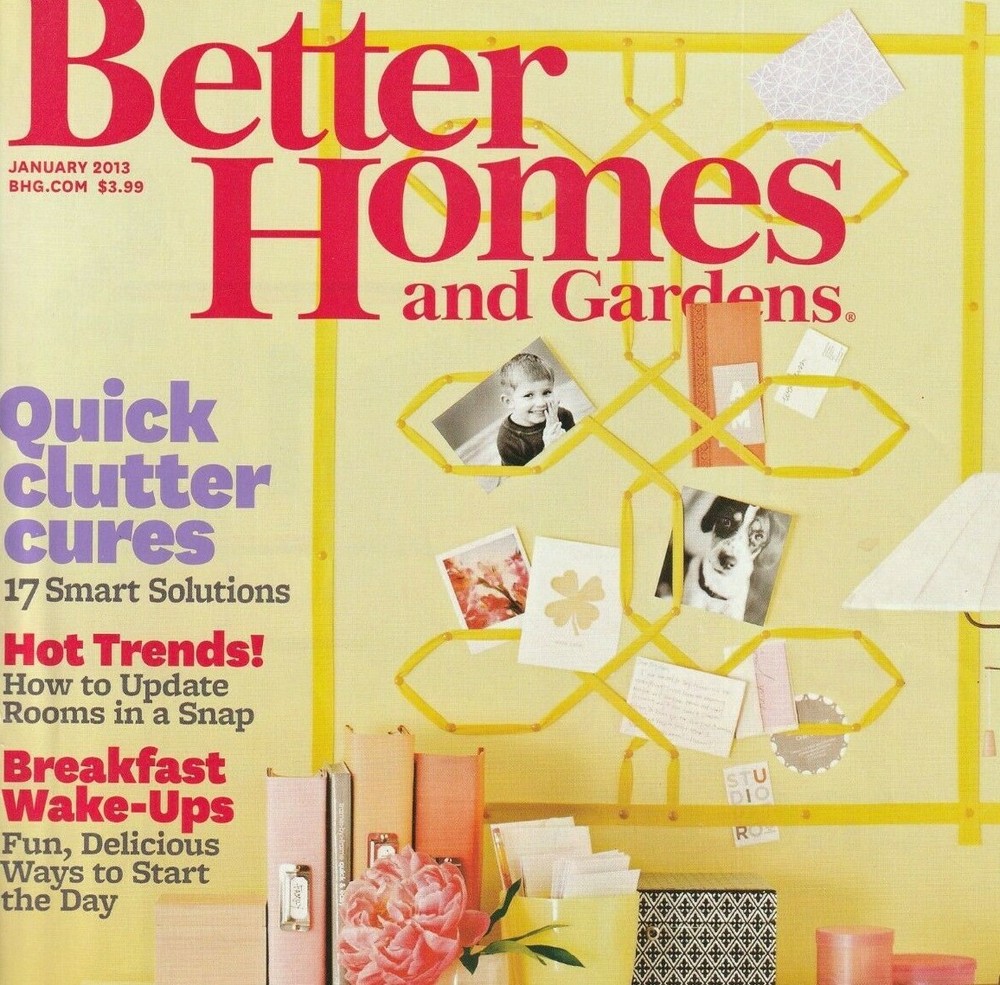 Better Homes and Gardens Magazine January 2013 Some of this issue's special features include: Quick Clutter Cures: 17 Smart Solutions Update Rooms in a Snap Breakfast Wake-Ups Simply Beautiful Ribbon Wall Shipping and handling is $7.95 USA only. International shipping costs will be calculated by location. A shipping discount will apply on multiple purchases when combined on a single invoice. When purchasing more than one item, please request total from seller to ensure combined shipping discount. Be sure to visit Two Pink Flamingos' Store and add us to your Favorites List! Questions? Feel free to email twopinkflamingos by sending message through eBay.