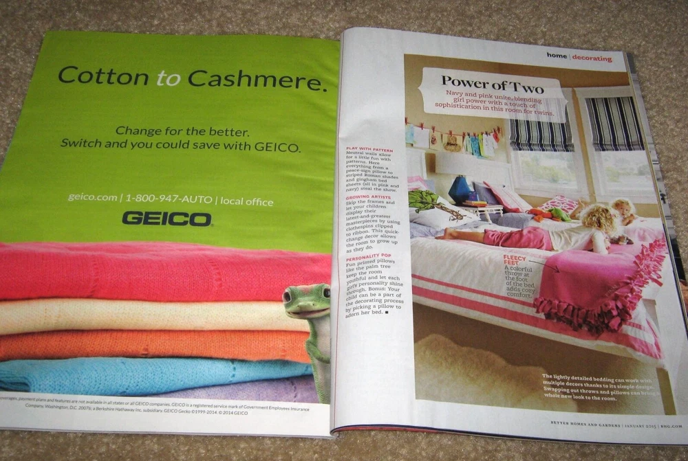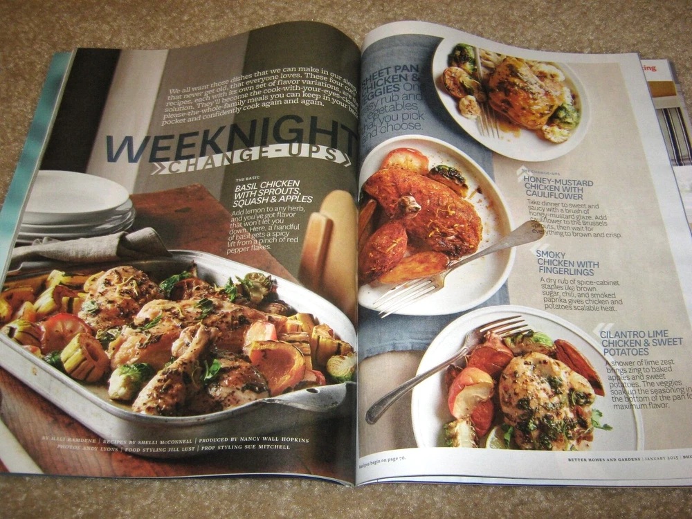 This listing is for a Better Homes and Gardens Magazine – January 2015. Articles include: Beautifully Organized – Tips & Tricks for Every Room; Tickled Pink – Colors That Lighten and Brighten; Your New Go-To Recipes; Showstopper Quiche. This magazine has 120 pages. The magazine is in like new condition.