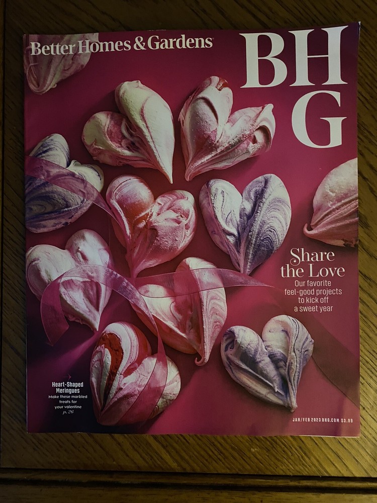 Better Homes and Gardens Magazine January/February 2023 Share The Love. New unread. As pictured, may show slight wear from original mailing. See pictures for condition of issue you will actually receive. Free Shipping via USPS First Class mail Check out my other current & back issues for combined discounts: https://www.ebay.com/sch/Magazines/280/m.html?_nkw=&_armrs=1&_ipg=&_from=&_ssn=dominic2k 100% Positive Feedback! Thanks for looking!