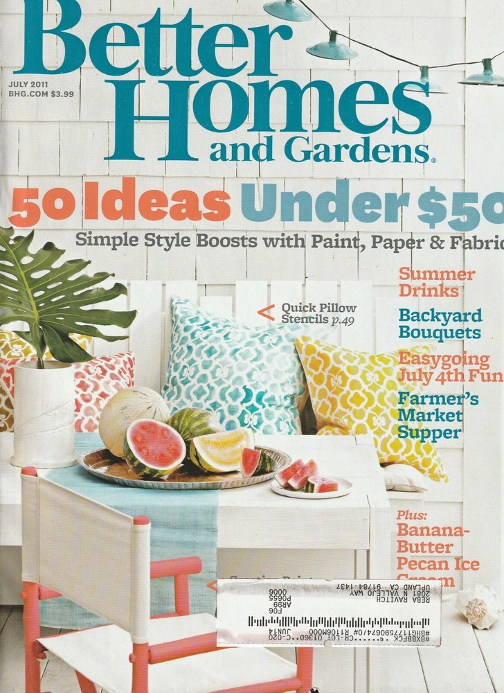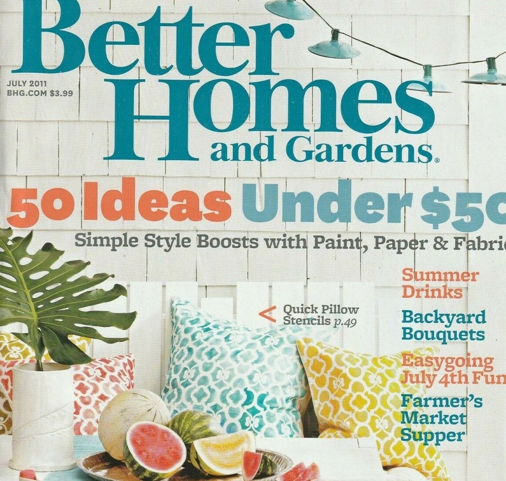 Better Homes and Gardens Magazine July 2011 Some of this issue's special features include: 50 Ideas Under $50 Summer Drinks Backyard Bouquets Easygoing July 4th Fun Shipping and handling is $6.95 USA only. International shipping costs will be calculated by location. A shipping discount will apply on multiple purchases when combined on a single invoice. When purchasing more than one item, please request total from seller to ensure combined shipping discount. Be sure to visit Two Pink Flamingos' Store and add us to your Favorites List! Questions? Feel free to email twopinkflamingos by sending message through eBay.