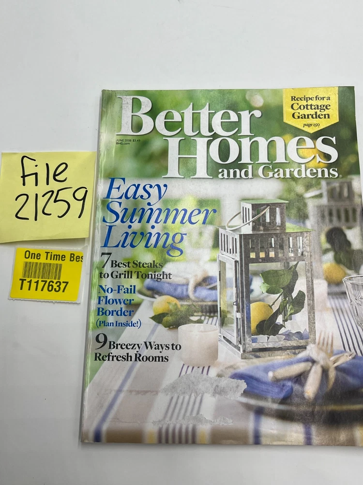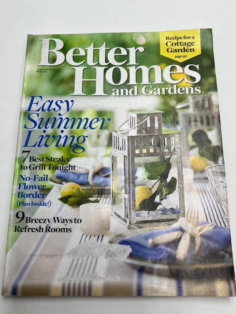 Better Homes and Gardens Magazine June 2008 Issue Easy Summer Living For our customers who can not use USPS please let us know after your purchase so we can choose a separate shipping option. 1 00% Genuine U S A S E L L E R Check out my feedback! FAST, PROFESSIONAL SHIPPING! Shipping: · Orders placed on Monday and Tuesday before 5 AM MST Will Ship Same Day. excluding government holidays. · Orders placed Wednesday to Friday before 6 AM MST Will Ship Same Day. Tracking is provided on ALL Orders UPS Next Day Air may be available for orders over $500 at an extra cost. Please inquire for pricing prior to purchase. We always try to use the fastest standard shipping available for all of our items through UPS, FedEx and USPS. For our customers who can not use USPS please let us know after your purchase so we can choose a separate shipping option. Returns : ALL returns are accepted if returned within 30 days. Money Back or exchange guaranteed. NO Restocking Fees.
