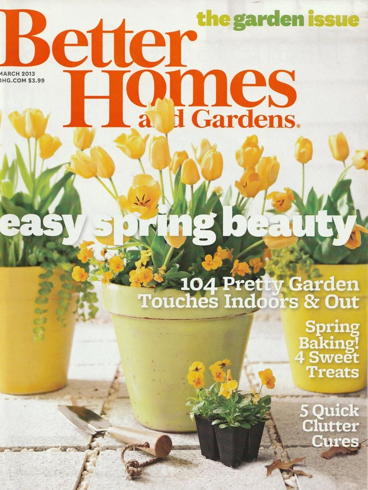 Better Homes and Gardens Magazine March 2013: Garden Issue Some of this issue's special features include: Pretty Garden Touches Indoors and Out Spring Baking Quick Clutter Cures Shipping and handling is $7.95 USA only. International shipping costs will be calculated by location. A shipping discount will apply on multiple purchases when combined on a single invoice. When purchasing more than one item, please request total from seller to ensure combined shipping discount. Be sure to visit Two Pink Flamingos' Store and add us to your Favorites List! Questions? Feel free to email twopinkflamingos by sending message through eBay.