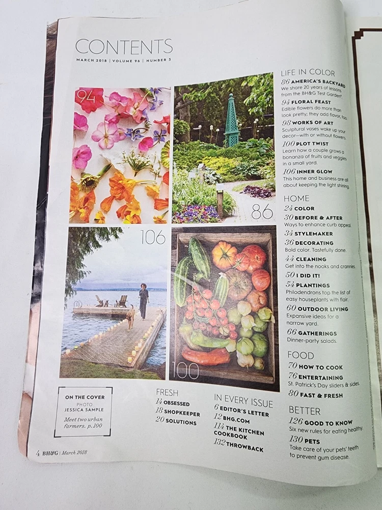 Better Homes and Gardens Magazine March 2018 Garden Issue Spring Forward Magazine is clean with minimal wear. No tears, no water damage, and no musty or smoky odors. Please see photo of contents in this issue. Comes from a smoke free home. Fast shipping after purchase. Thank you for looking at this item. I combine shipping for multiple purchases. Reasonable offers are always considered. Feel free to send me a message at any time.
