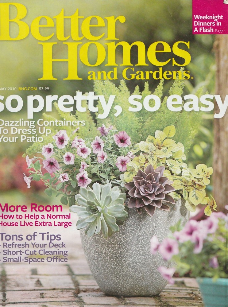 Better Homes and Gardens Magazine May 2010 Some of this issue's special features include: Dazzling Containers to Dress Up Your Patio Refresh Your Deck Short Cut Cleaning Small Space Office Shipping and handling is $7.95 USA only. International shipping costs will be calculated by location. A shipping discount will apply on multiple purchases when combined on a single invoice. When purchasing more than one item, please request total from seller to ensure combined shipping discount. Be sure to visit Two Pink Flamingos' Store and add us to your Favorites List! Questions? Feel free to email twopinkflamingos by sending message through eBay.