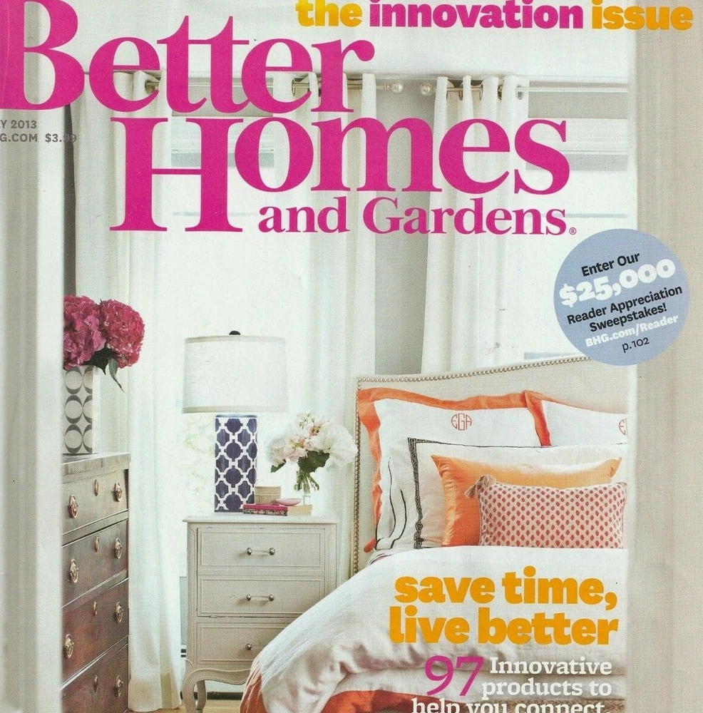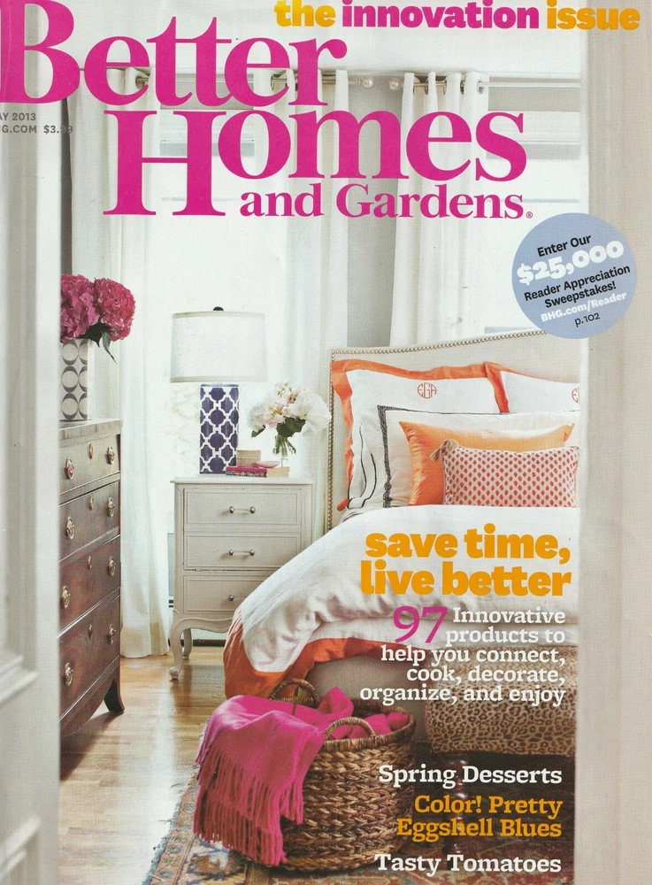 Better Homes and Gardens Magazine May 2013: Innovation Issue Some of this issue's special features include: Save Time, Live Better Spring Desserts Tasty Tomatoes Pretty Eggshell Blues Shipping and handling is $7.95 USA only. International shipping costs will be calculated by location. A shipping discount will apply on multiple purchases when combined on a single invoice. When purchasing more than one item, please request total from seller to ensure combined shipping discount. Be sure to visit Two Pink Flamingos' Store and add us to your Favorites List! Questions? Feel free to email twopinkflamingos by sending message through eBay.