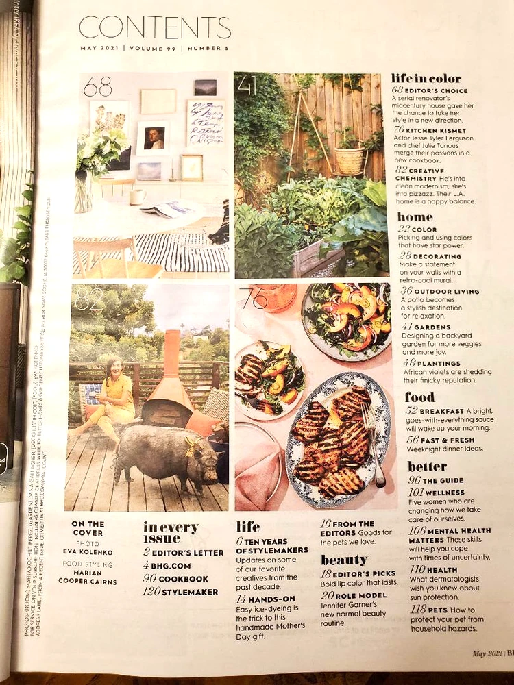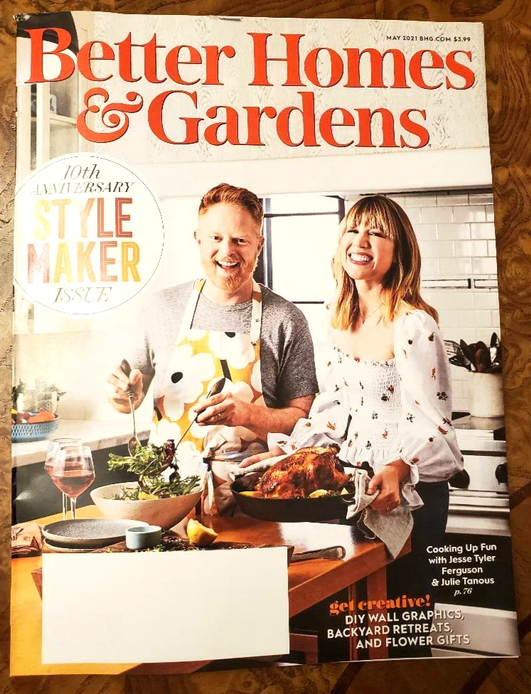 This listing is for a Better Homes and Gardens Magazine – May 2021. Articles include: 10 th Anniversary Style Maker Issue; Cookin up fun with Jesse Tyler Ferguson & Julie Tanous; Get Creative DIY Wall graphics, backyard retreats, and flower gifts and much more. This is a new magazine.