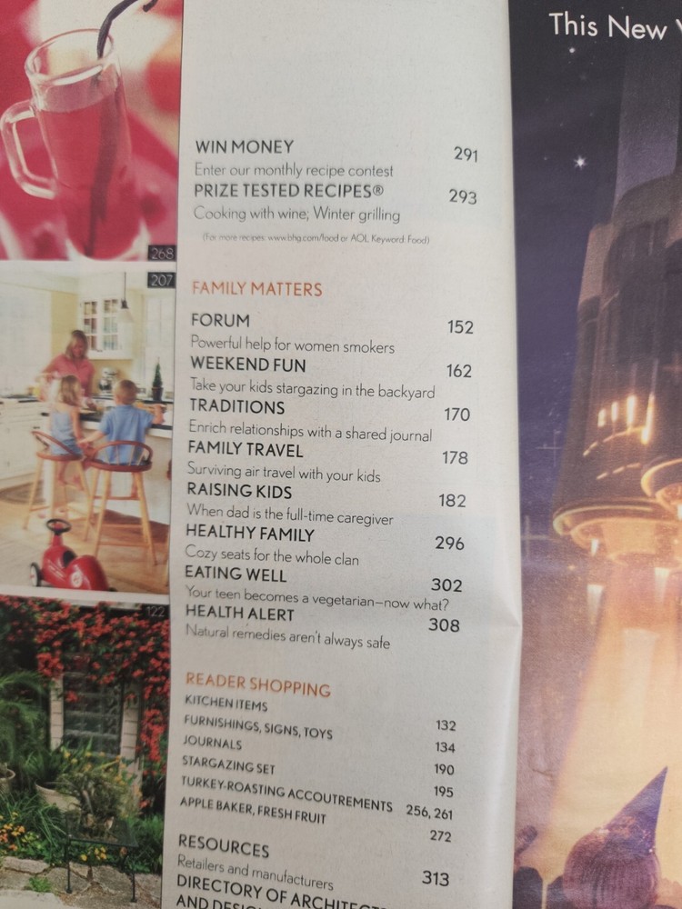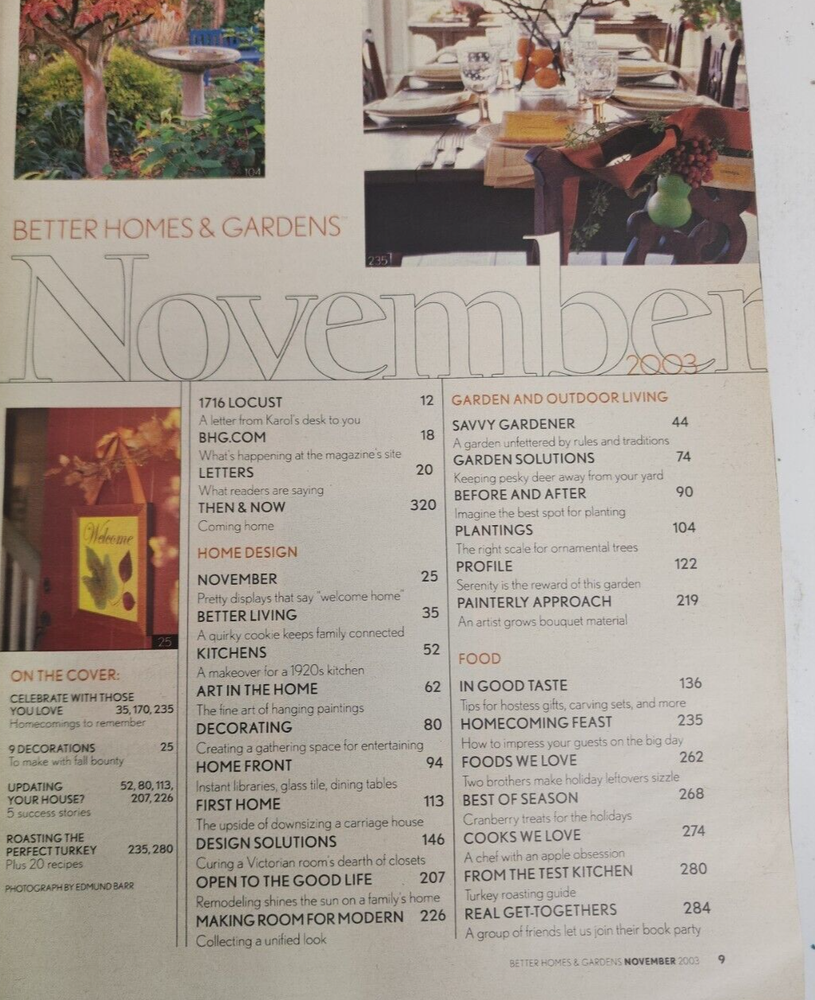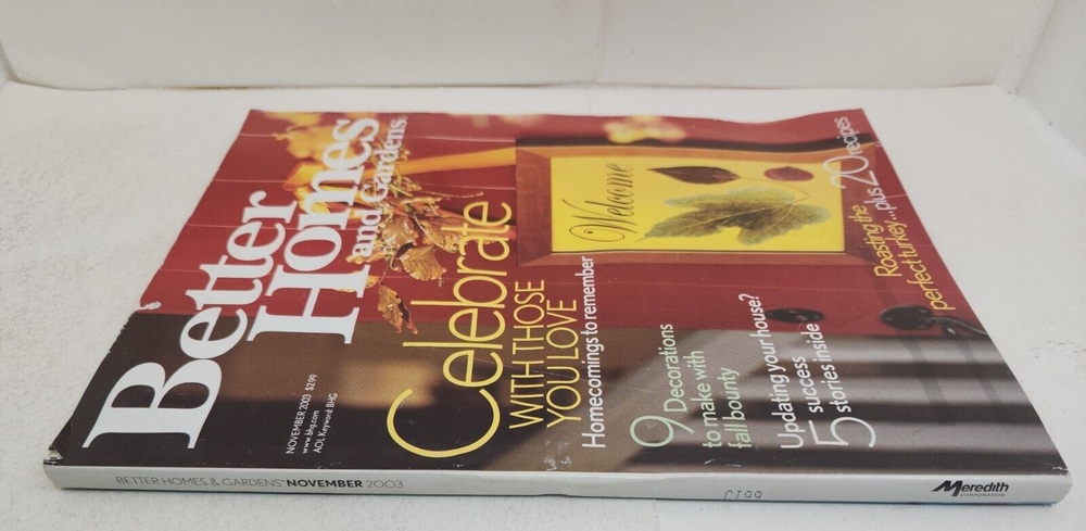 Better Homes and Gardens Magazine November 2003 Celebrate With Those You Love Magazine is clean with minimal to minor wear. No tears, no water damage, and no musty or smoky odors. Please see photo of contents in this issue. Comes from a smoke free home. Fast shipping after purchase. Thank you for looking at this item. I combine shipping for multiple purchases. Reasonable offers are always considered. Feel free to send me a message at any time.