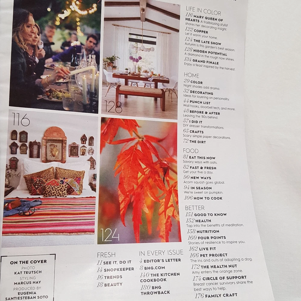 Autumn Glow we have a crush on copper Brand: Better Homes and Gardens Item: Magazine Theme : Easy projects that add copper shine to your fall holidays A feast rooted in tradition Makeovers we love Spooky fun crafts and more. Year: October 2016 Condition: Wear to both covers, edges and spine. International Shipping - Buyer pays full shipping charges, tariffs, duties, fees, etc...