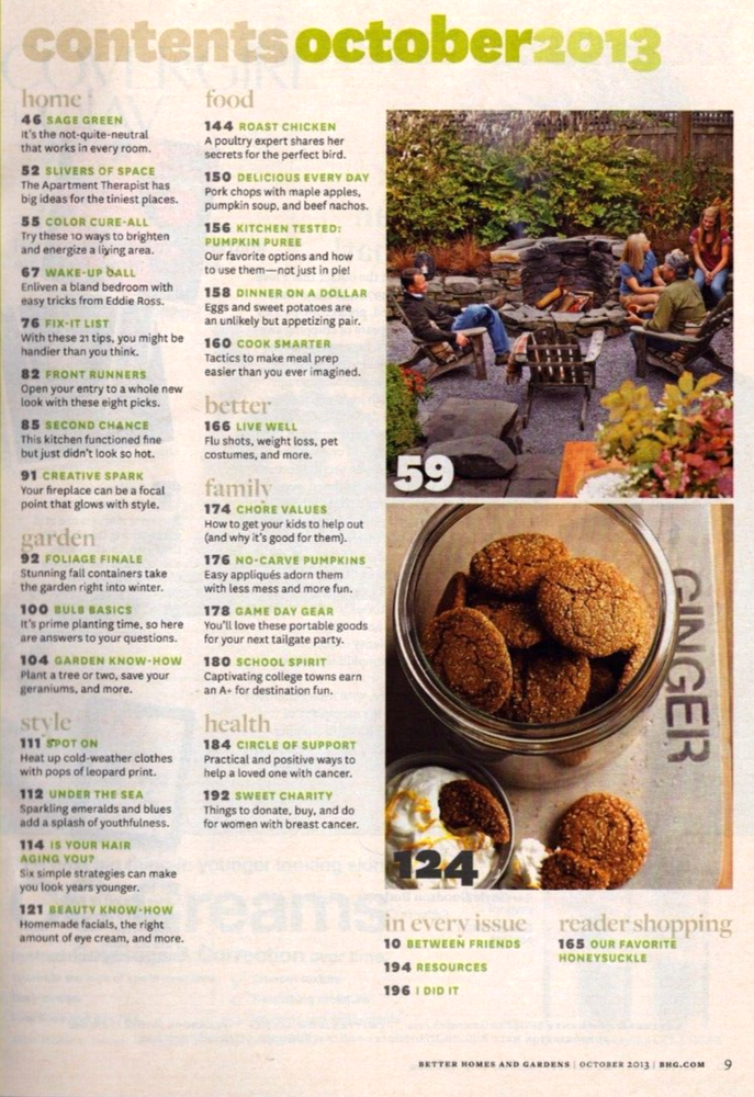 Better Homes and Gardens Magazine October 2013 Some of this issue's special features include: Refresh any Room! Gorgeous Autumn Containers Easy-to-Make Gourd Vase Shipping and handling is $6.95 USA only. International shipping costs will be calculated by location. A shipping discount will apply on multiple purchases when combined on a single invoice. When purchasing more than one item, please request total from seller to ensure combined shipping discount. Be sure to visit Two Pink Flamingos' Store and add us to your Favorites List! Questions? Feel free to email twopinkflamingos by sending message through eBay.