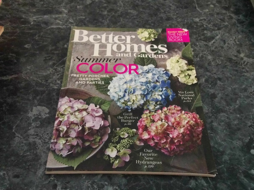 This is Better Homes and Gardens Magazine Vol 94 No 8 August 2016 Perfect Burger Contents: Shades of Summer, Sweet Peach and Zingy Mint, Family Pets, TV Center turned play Kitchen, American Family Room, Organizing, Gardeners we Love, Creamy Cheese and Juicy Fruit, Perfect Burger, Green Beans If you are purchasing more than one please request a combined invoice No markings some shelf wear spine good binding good Any questions please email me