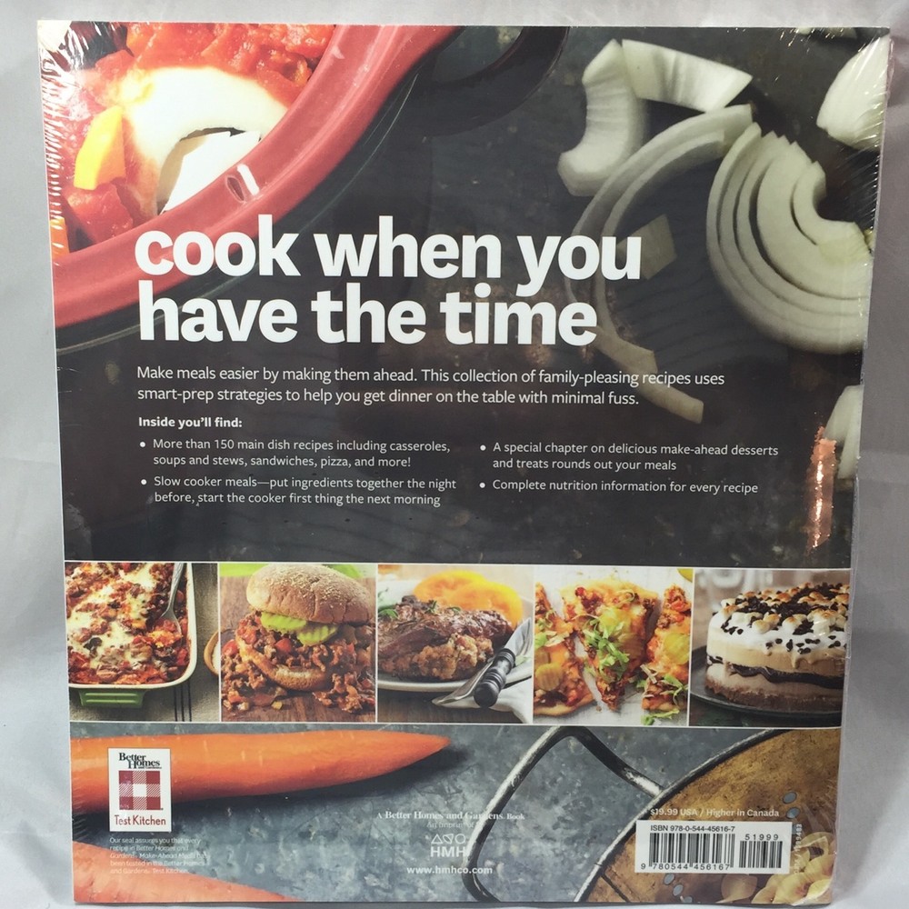 Better Homes and Gardens Make-Ahead Meals is a must-have recipe collection for anyone looking to get homemade dishes on the table with ease. Filled with over 150 recipes and 100 gorgeous photos, plus tips and tricks for quick food prep and complete meals, this book makes planning dinner a breeze. Please see all pictures and contact me with any questions. Please see my other items up for sale - FamilyFindsFL Thanks for looking!