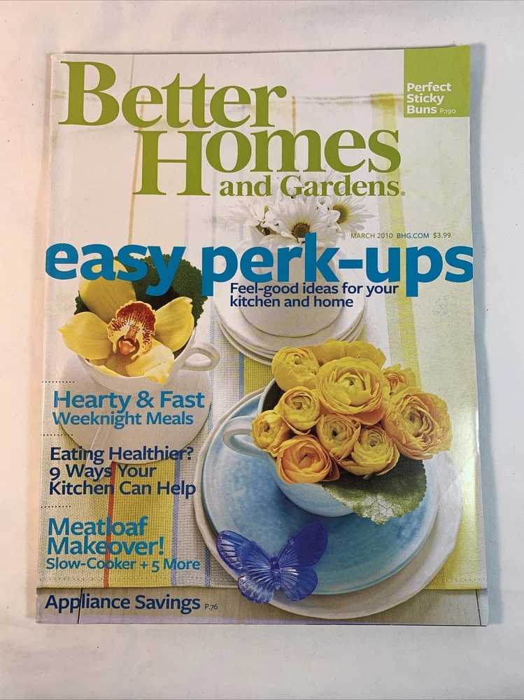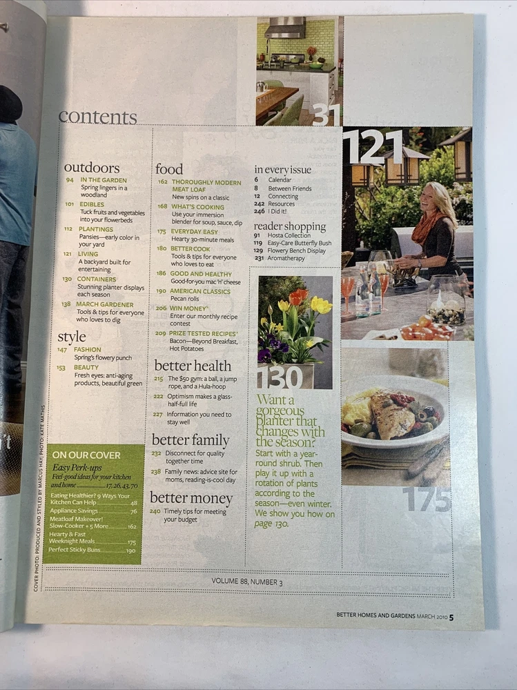 Better Homes and Gardens March 2010 Hearty & Fast/Meatloaf/Veggies in Flower Bed