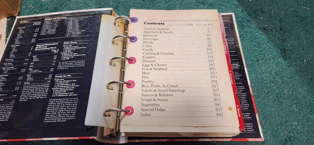 BETTER HOMES AND GARDENS NEW COOKBOOK Cookbook housed in 5 ring binder hardcover Sections in cook book are tabbed. Title page is missing, but the rest of cookbook is complete. Cookbook in pretty good ...